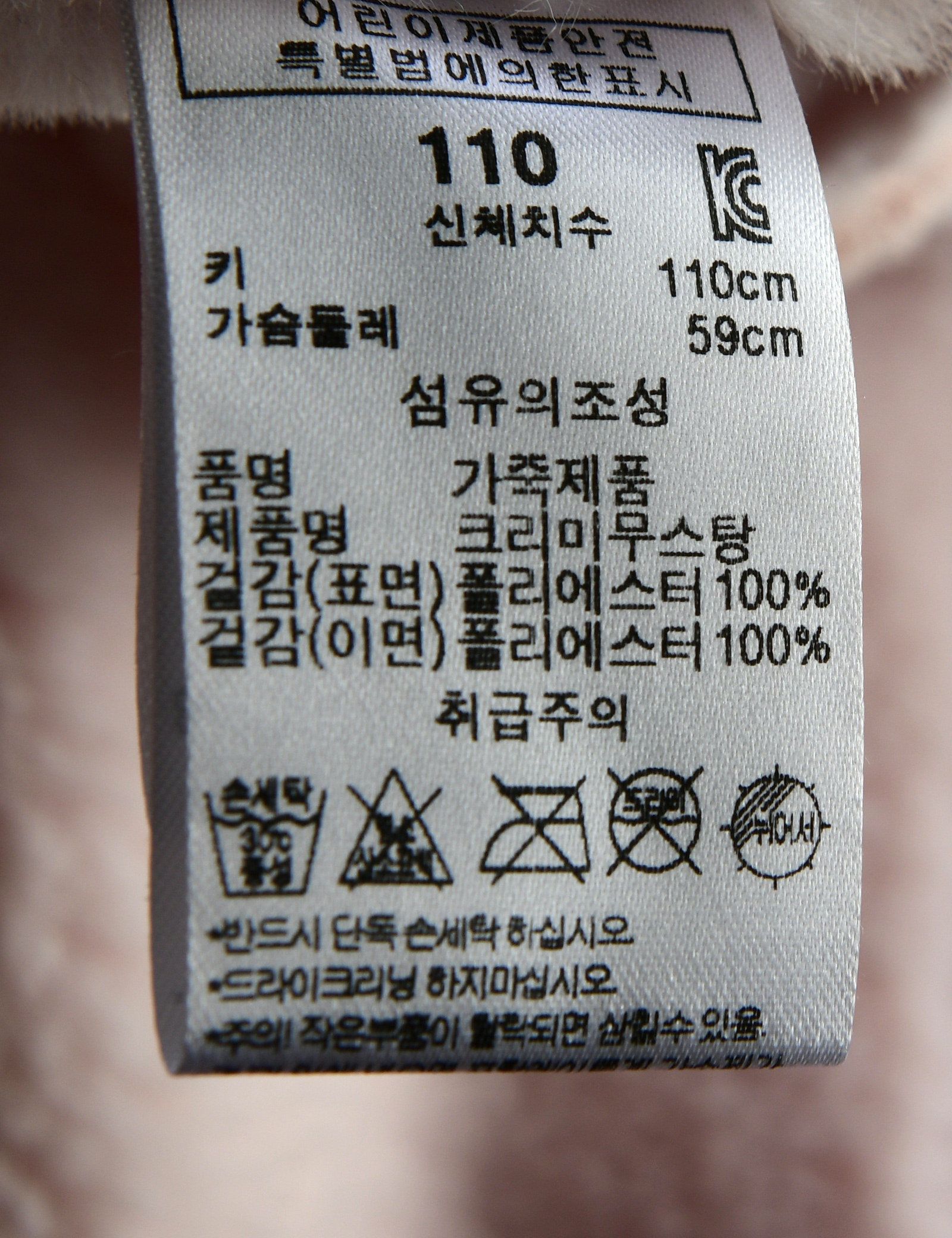세탁방법 및 취급시 주의사항 본 세품은 손세탁 하십시오(케어라벨 참고)
