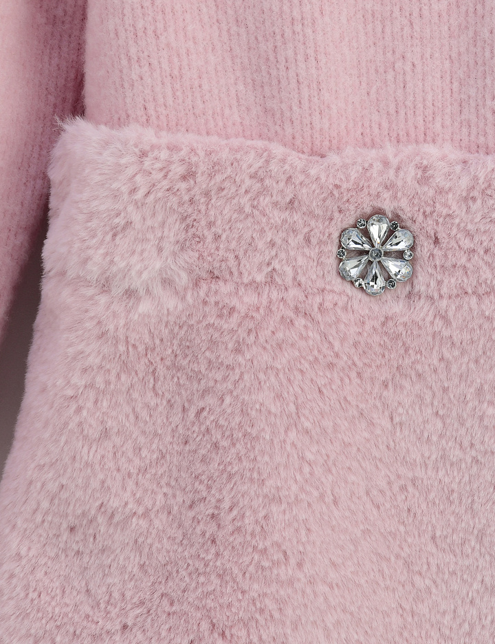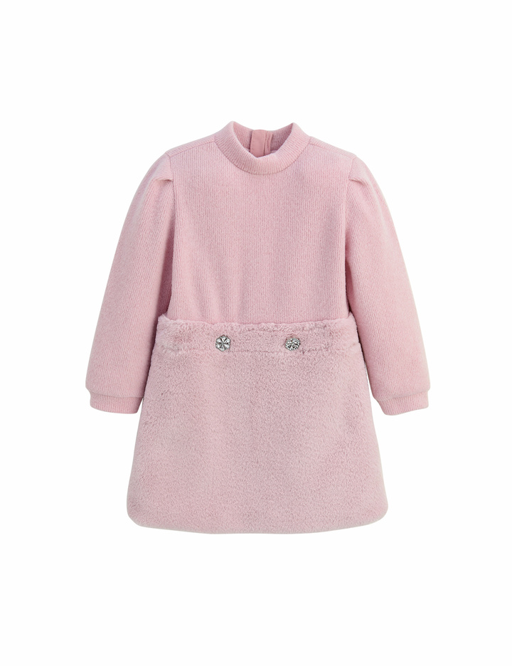 이번 시즌 새롭게 제안하는 퍼믹스 원피스입니다. 쥬얼리 단추를 허리단에 포인트를 주어 더욱더 사랑스러운 원피스입니다. 따뜻하게 보온성도 겸비하고 세트를 입은듯하여 실용성 있는 원피스입니다.