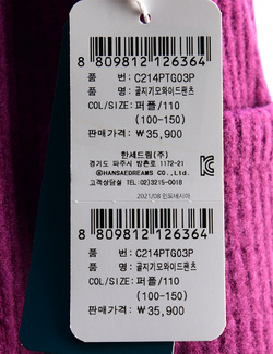 | 세탁방법 및 취급시 주의사항 | 본 세품은 손세탁 하십시오(케어라벨 참고) |