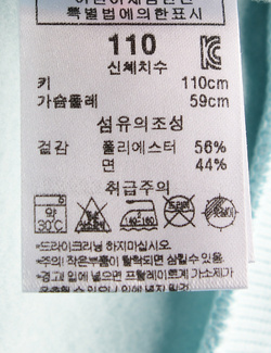 | 세탁방법 및 취급시 주의사항 | 본 세품은 손세탁 하십시오(케어라벨 참고) |