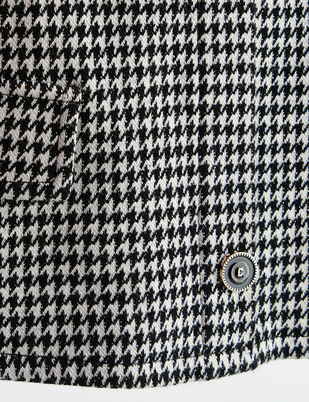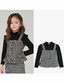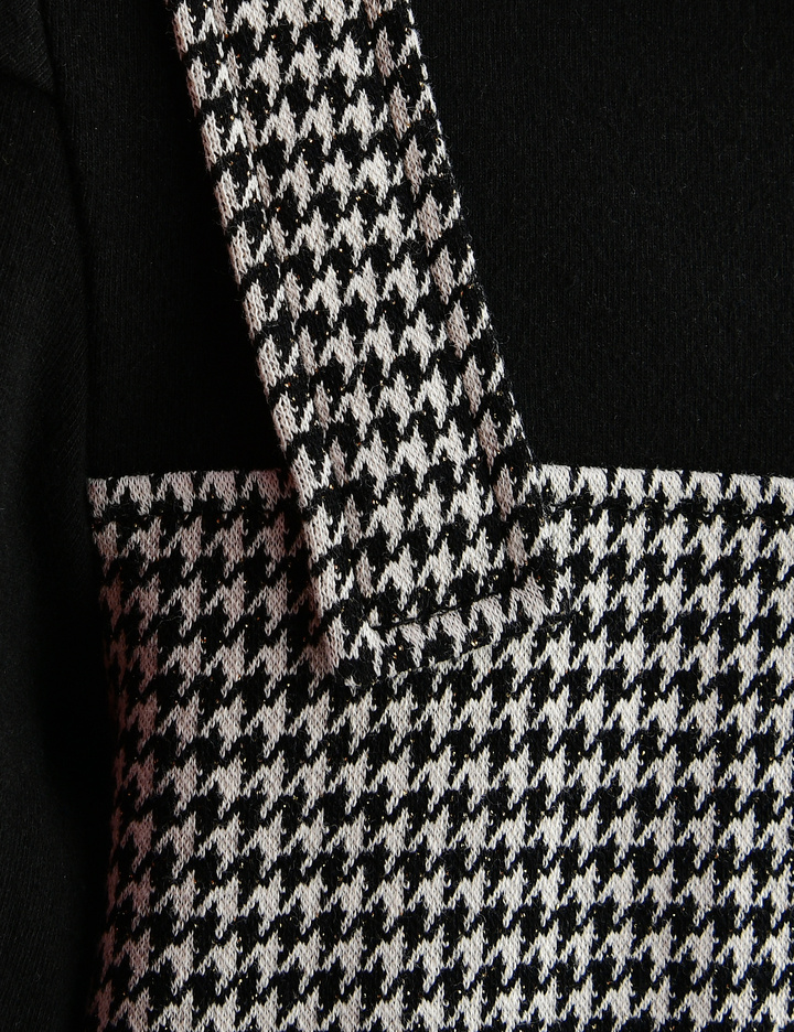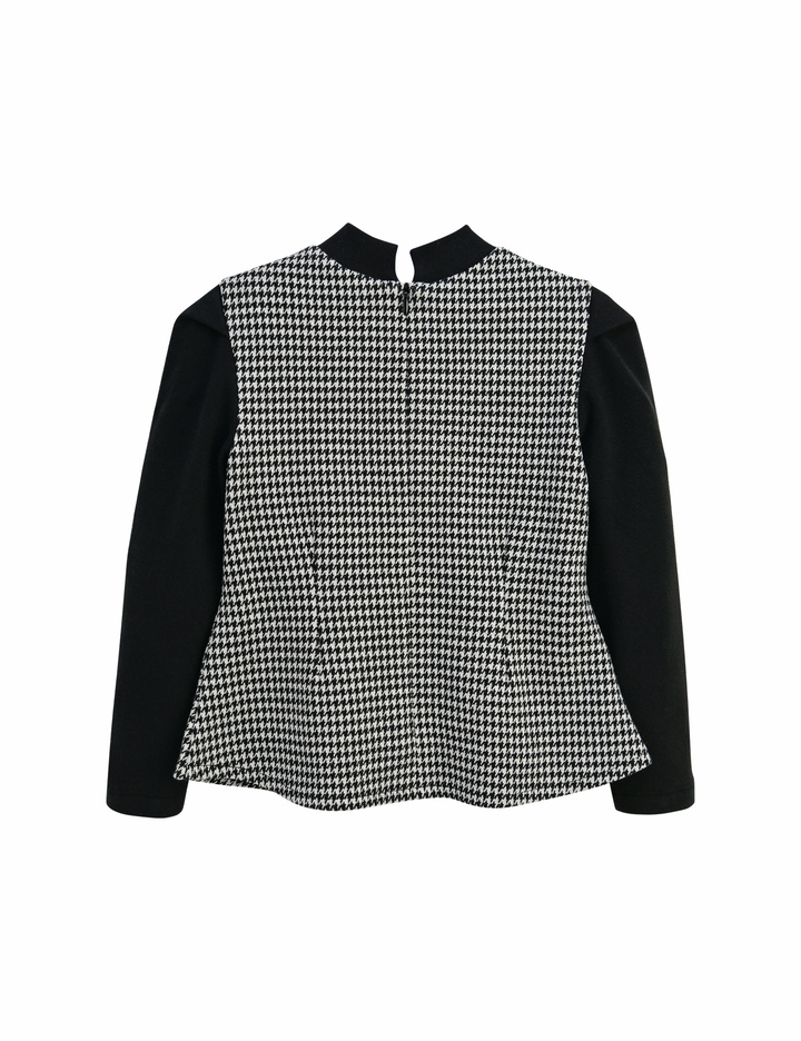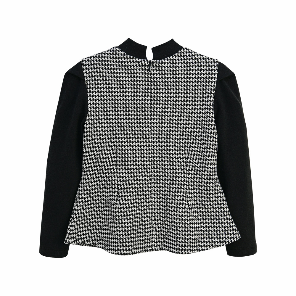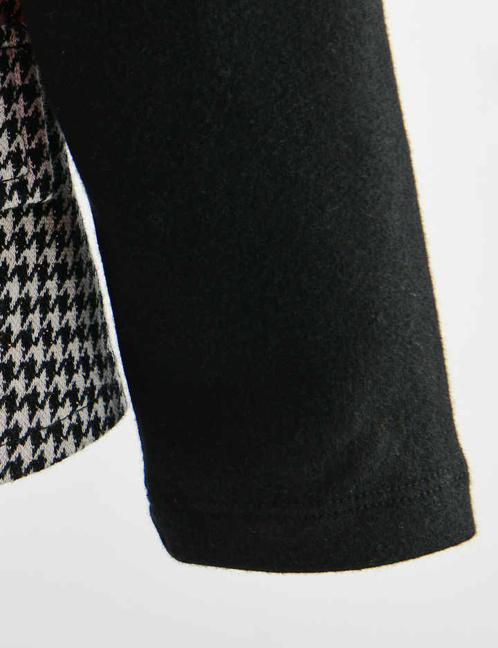 두 가지를 입은 듯한 여아 레이어드 티셔츠입니다. 클래식한 하운드투스 자카드 패턴과 고급스러운 에폭 단추로 포인트를 주었고, 같은 패턴의 와이드팬츠와 셋업 코디 추천드립니다.