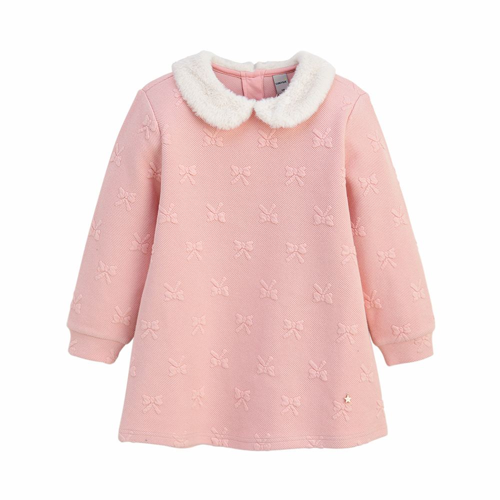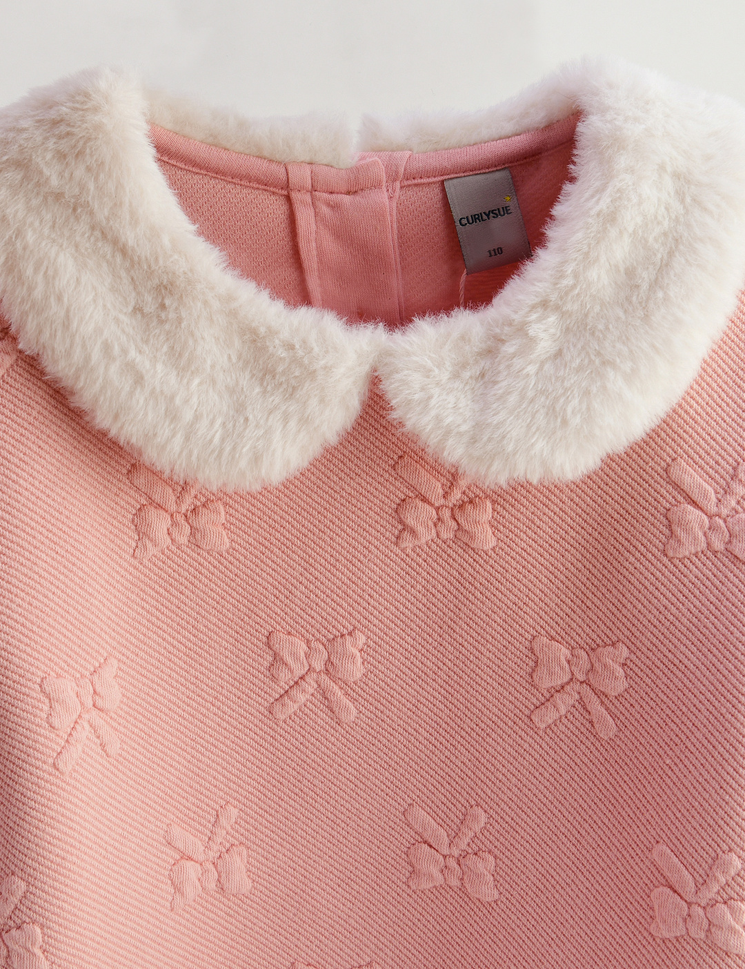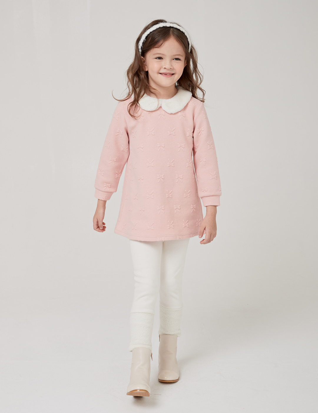 러블리한 리본과 따뜻한 퍼 애리를 포인트로 한 누비지 롱 티셔츠입니다. 도톰한 누비지 소재라 보온성도 있고 편안하게 레깅스 코디 용이하며 두 컬러 모두 소장 가치가 있어 자매 룩으로 추천드립니다.