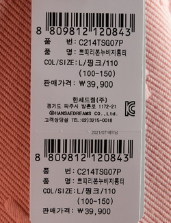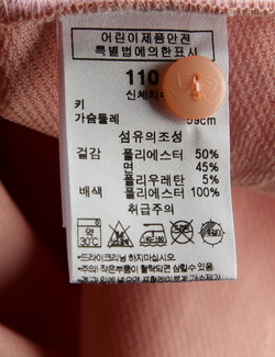 | 세탁방법 및 취급시 주의사항 | 본 세품은 손세탁 하십시오(케어라벨 참고) |