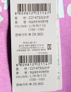 | 상품명 | [컬리수] 애슬레져여아맨투맨 |