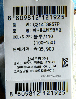 | 세탁방법 및 취급시 주의사항 | 본 세품은 손세탁 하십시오(케어라벨 참고) |