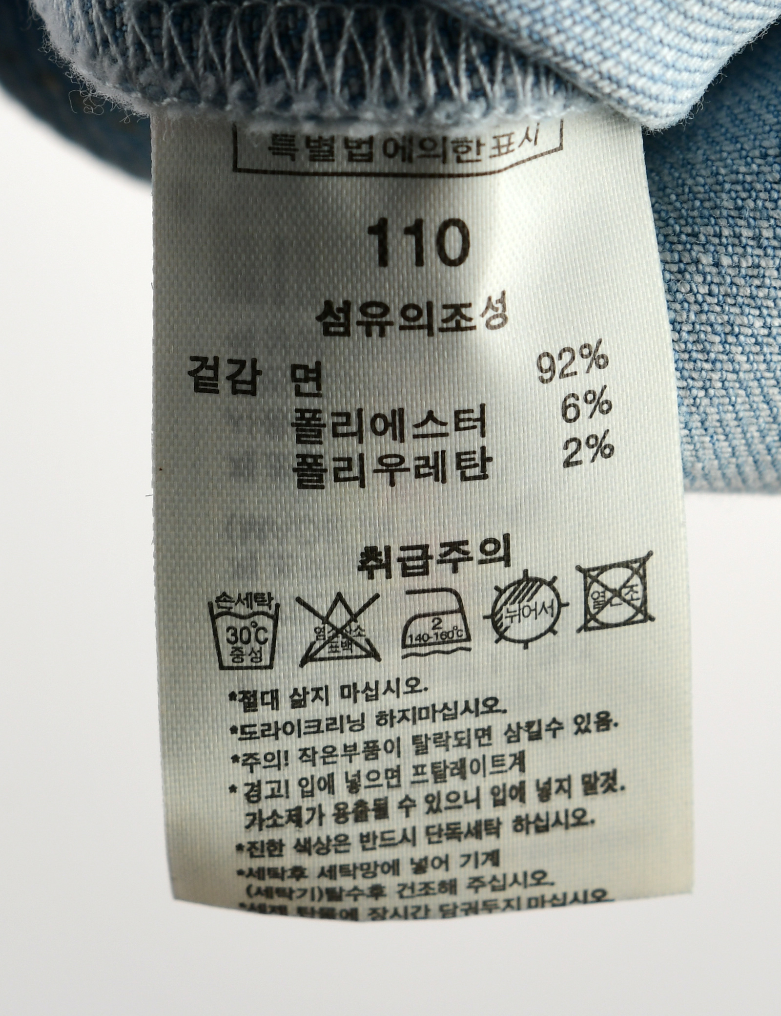 | 세탁방법 및 취급시 주의사항 | 본 세품은 손세탁 하십시오(케어라벨 참고) |