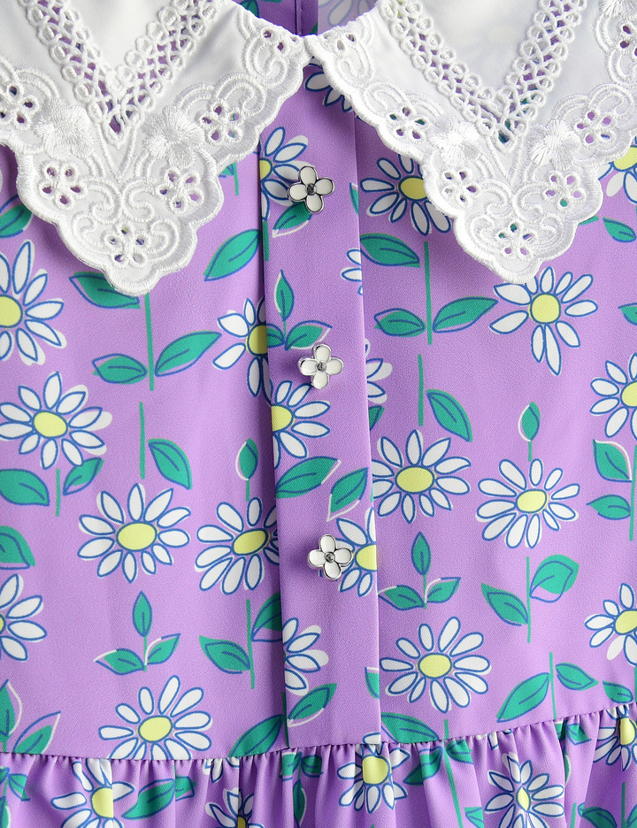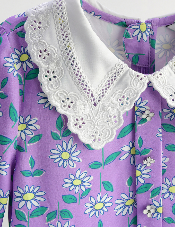 플라워 패턴과 레이스 카라로 디자인된 원피스입니다. 트렌디한 레이스 카라는 입었을 때 더욱더 빛을 발하며 가디건과 또는 트렌치코트와 잘 어울리며 데일리, 나들이 룩으로 추천드립니다.