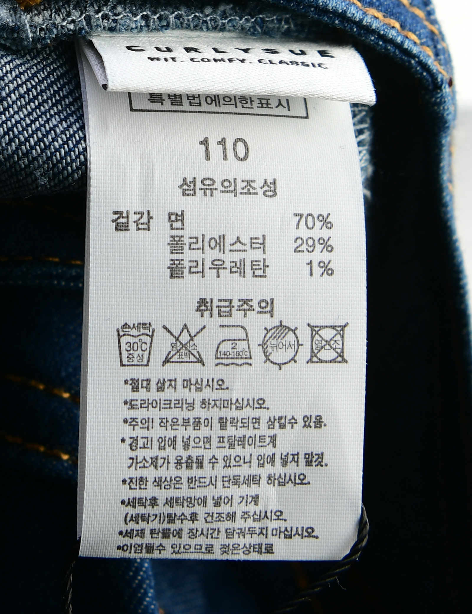 | 세탁방법 및 취급시 주의사항 | 본 세품은 손세탁 하십시오(케어라벨 참고) |