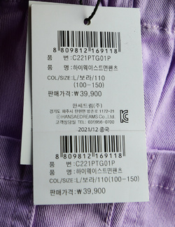 | 세탁방법 및 취급시 주의사항 | 본 세품은 손세탁 하십시오(케어라벨 참고) |