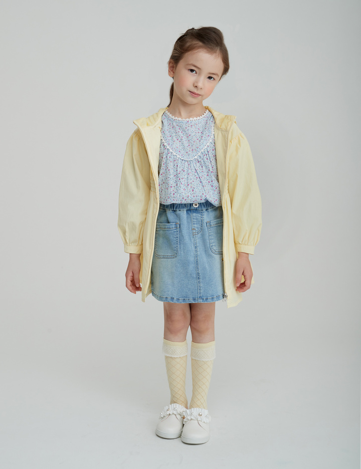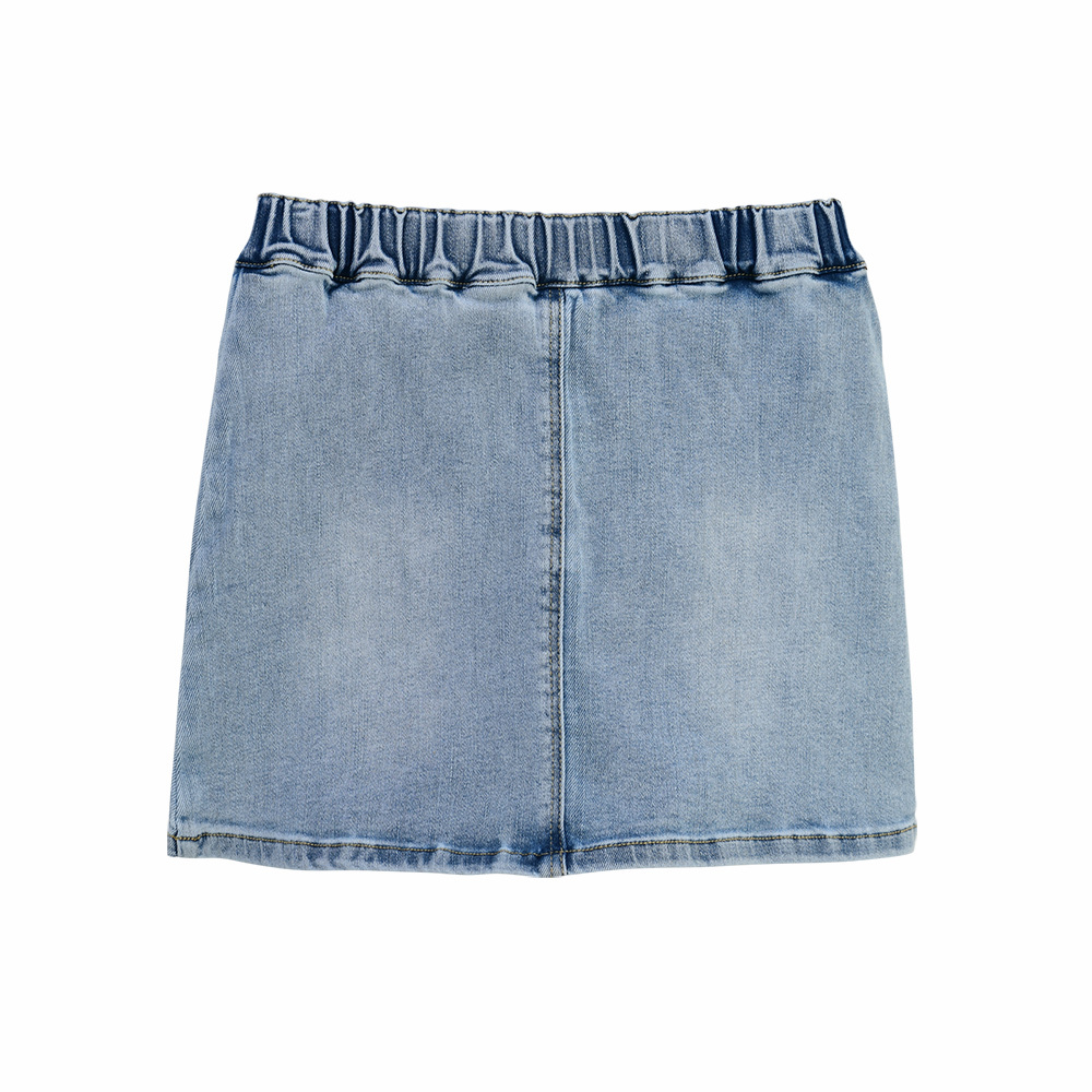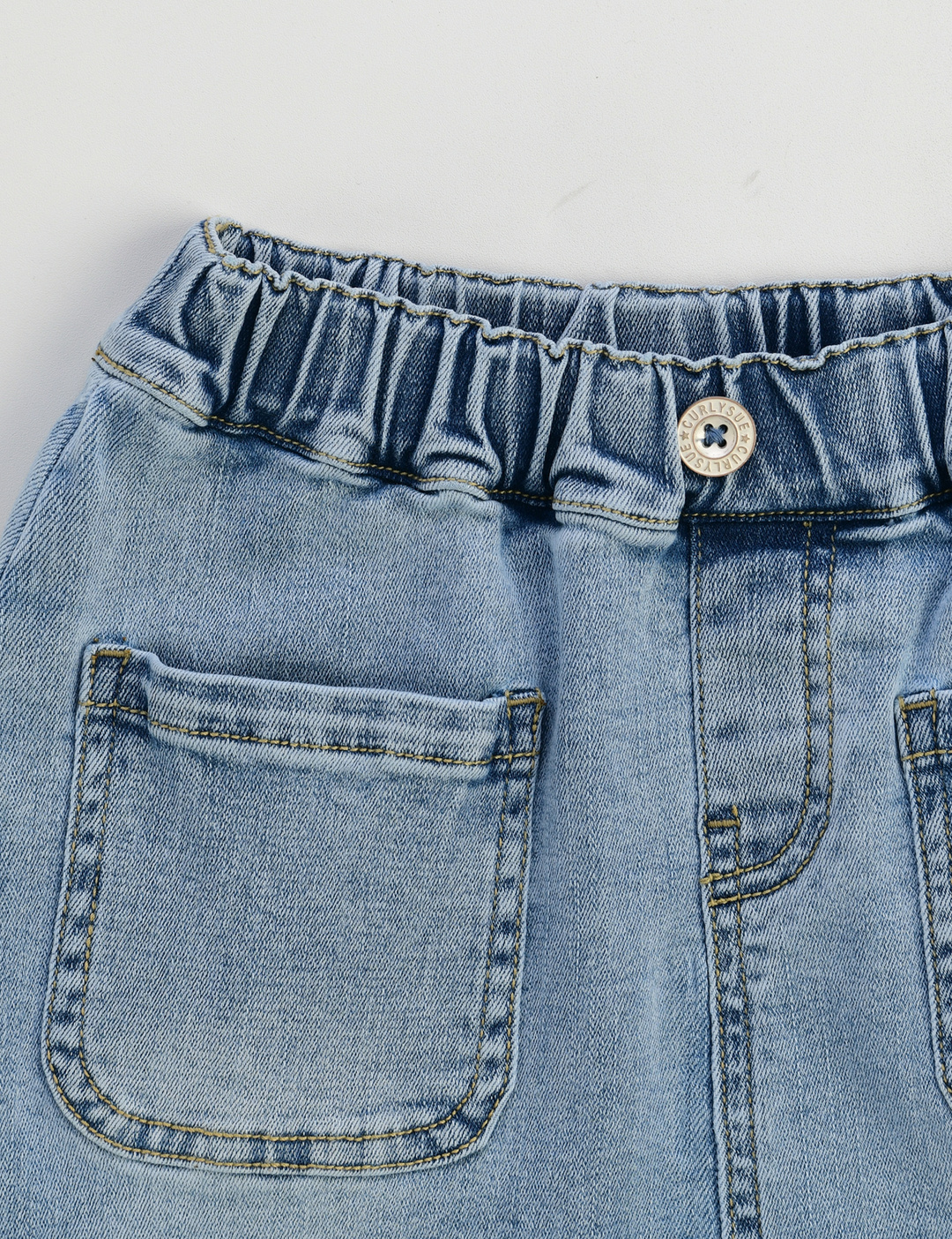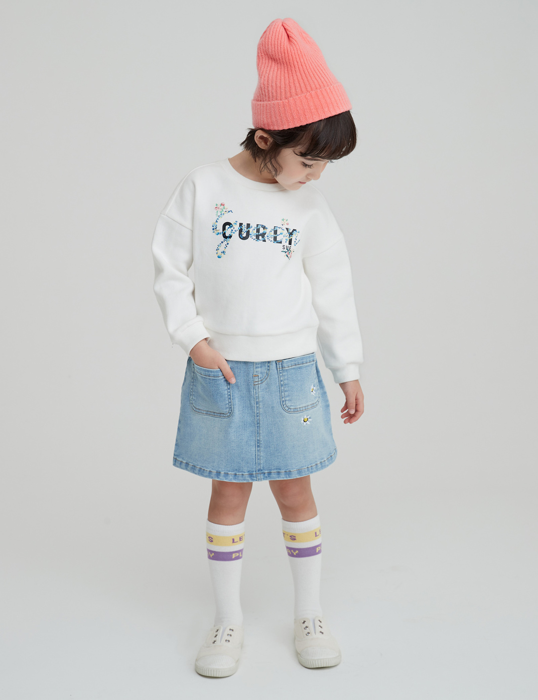 귀여운 꽃자수가 포인트인 데님 스커트입니다. 세미 A 라인에 신축성이 좋아 편안하게 입을 수 있습니다.