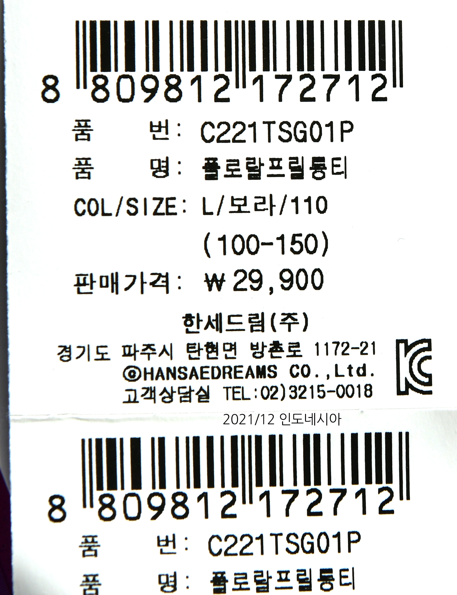 | 제조연월 | 202112 |