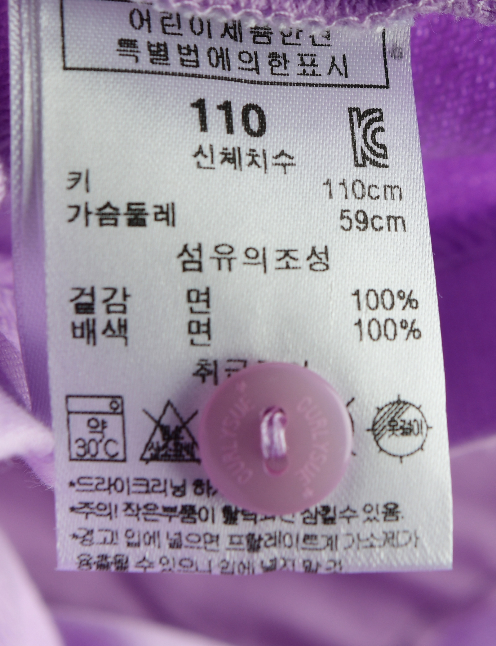 | 세탁방법 및 취급시 주의사항 | 본 세품은 손세탁 하십시오(케어라벨 참고) |