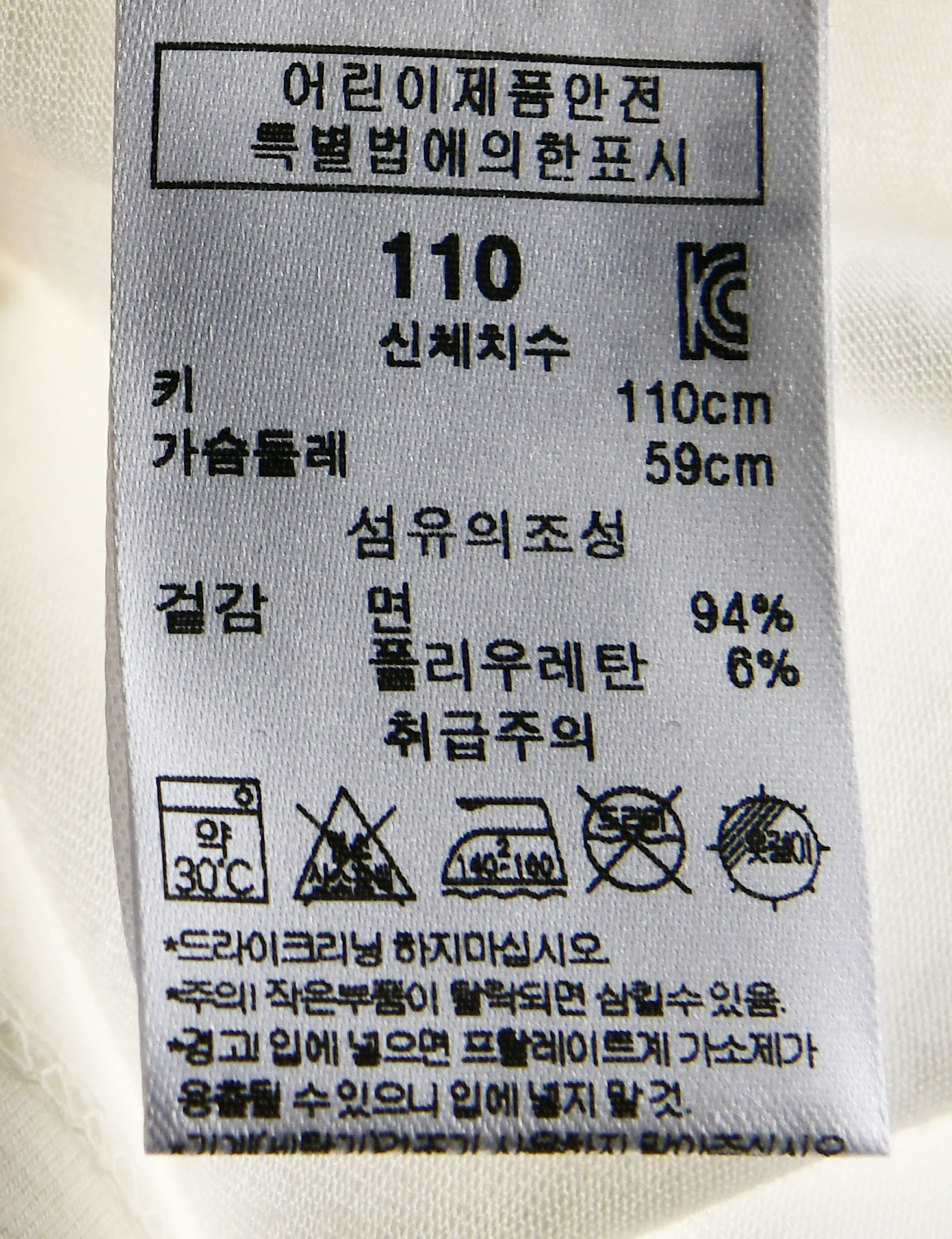 | 세탁방법 및 취급시 주의사항 | 본 세품은 손세탁 하십시오(케어라벨 참고) |