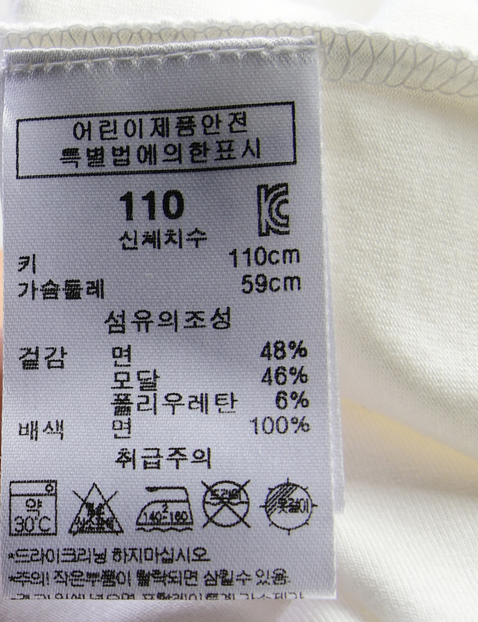 제품소재 (겉감)면48%,모달46%,폴리우레탄6%(배색)면100%