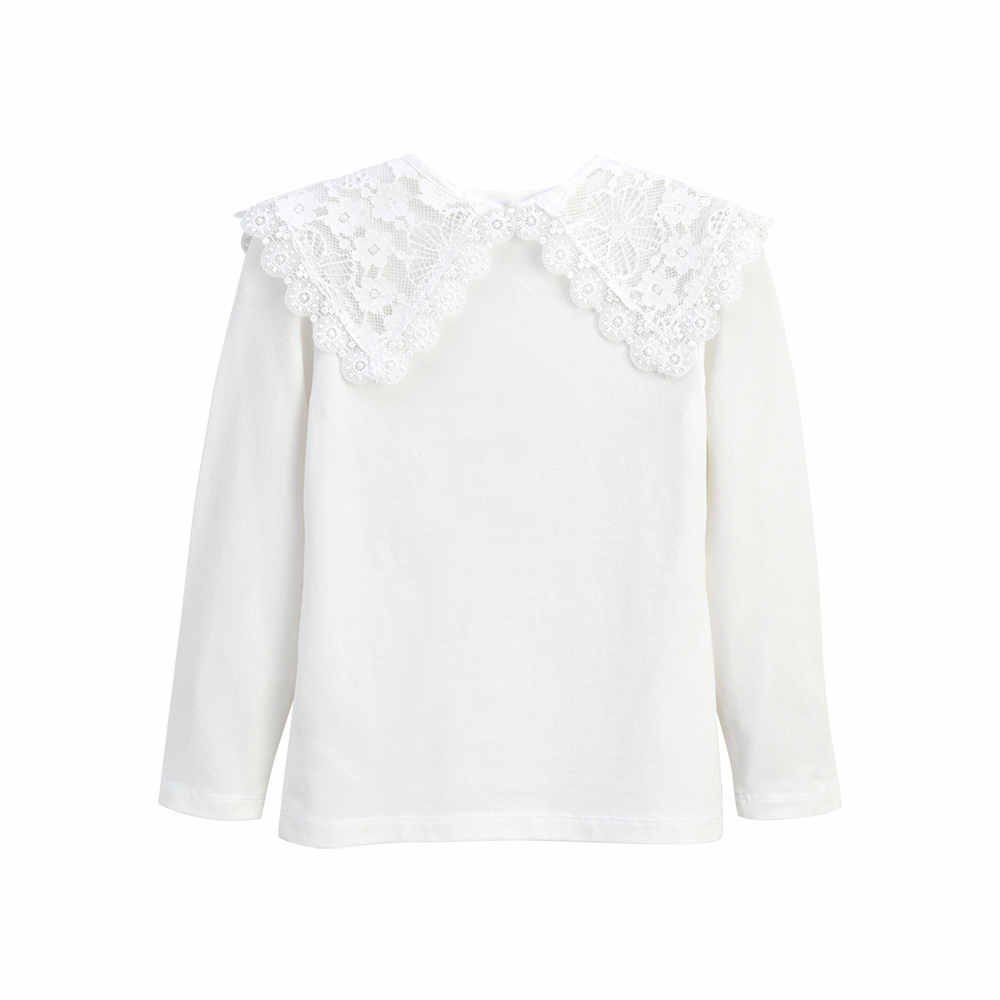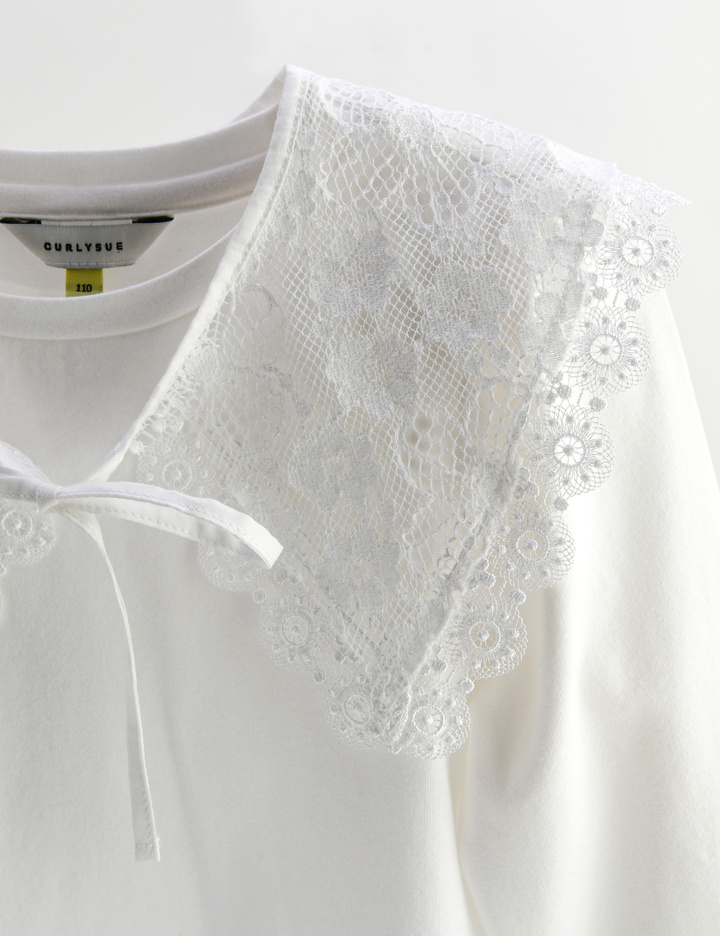 모달 스판 소재를 사용해 터치가 부드럽고 활동이 편안한 티 블라우스입니다. 넓은 레이스 카라는 탈착이 가능해 탈착 시에는 여아 기본 티셔츠로도 활용하면 좋은 아이템입니다.
