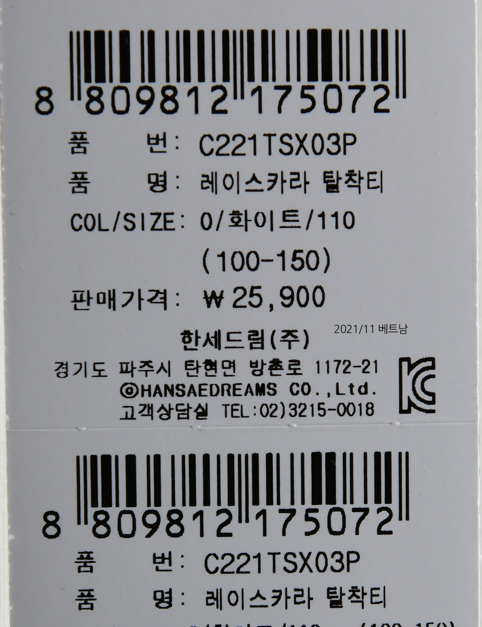 | 제조사 | 한세드림(주) |