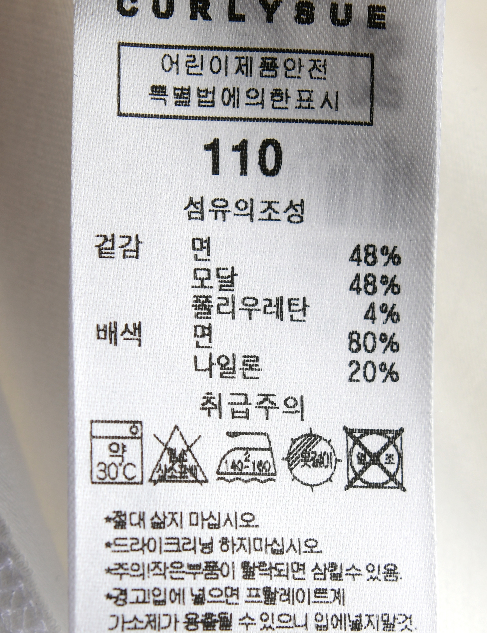 | 세탁방법 및 취급시 주의사항 | 본 세품은 손세탁 하십시오(케어라벨 참고) |