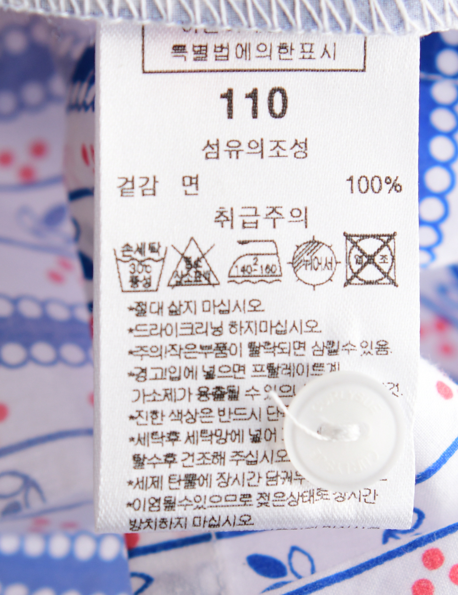 | 세탁방법 및 취급시 주의사항 | 본 세품은 손세탁 하십시오(케어라벨 참고) |