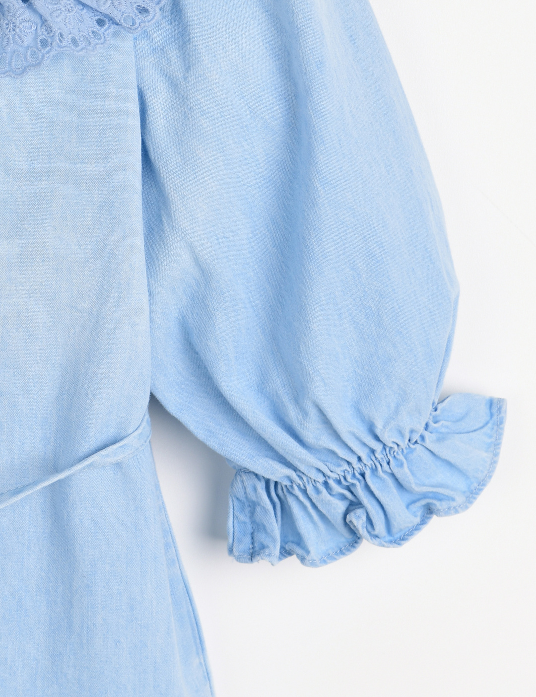 트렌디한 빅 카라에 레이스가 매치되어 여성스러운 아이템입니다. 허리에 제 원단 끈이 있어 루즈핏의 하의와 코디할 때는 끈을묶어 여성스러운 핏, 스키니한 하의와 코디할 때는 끈을 빼고 오픈해서 편안한 핏으로연출 가능합니다.