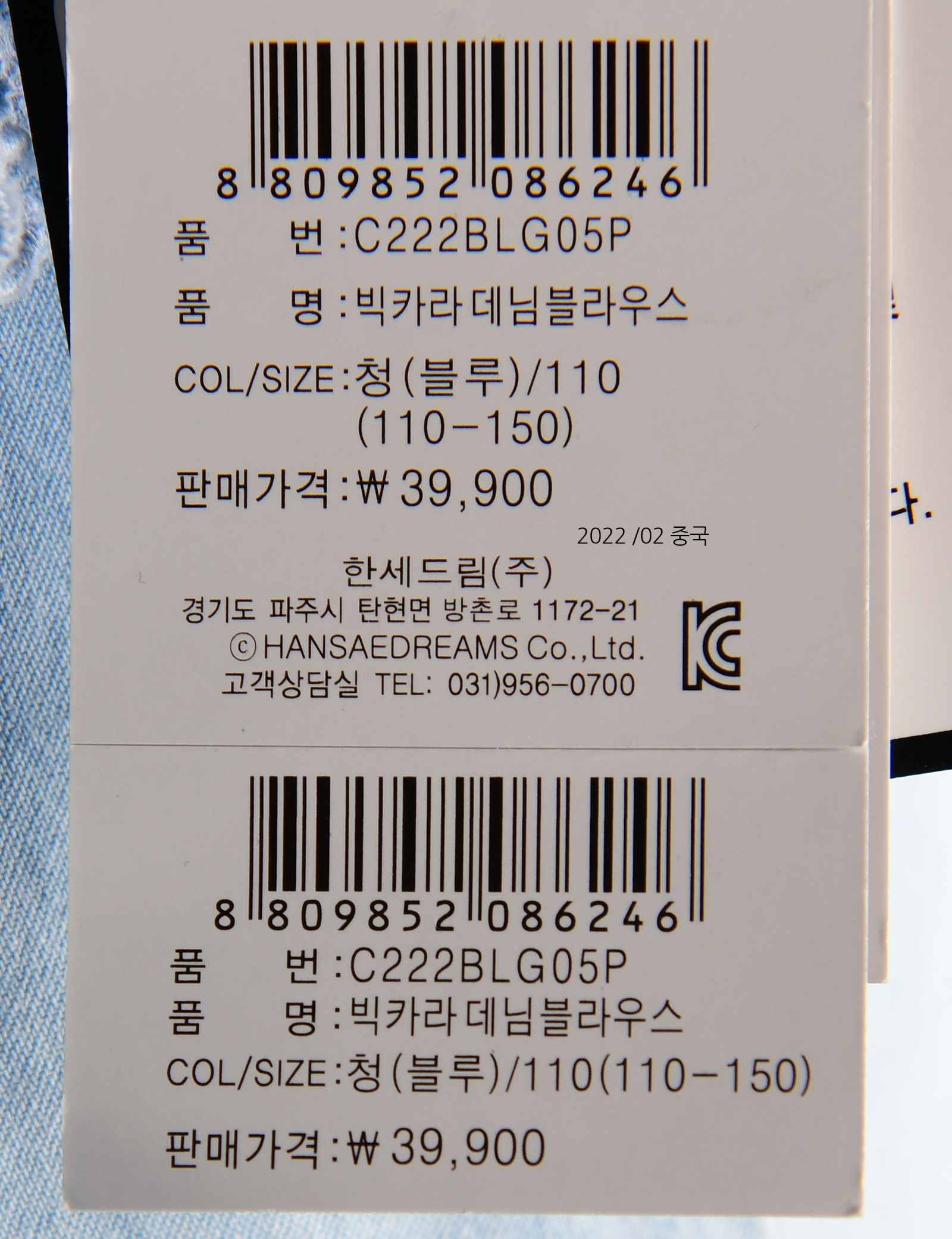 C222BLG05P [컬리수] 빅카라 데님블라우스