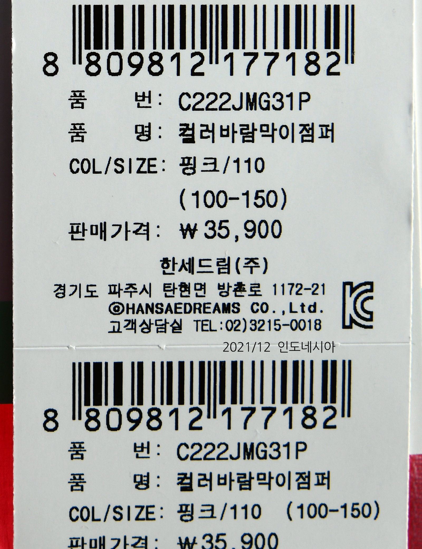 | 제조연월 | 202112 |