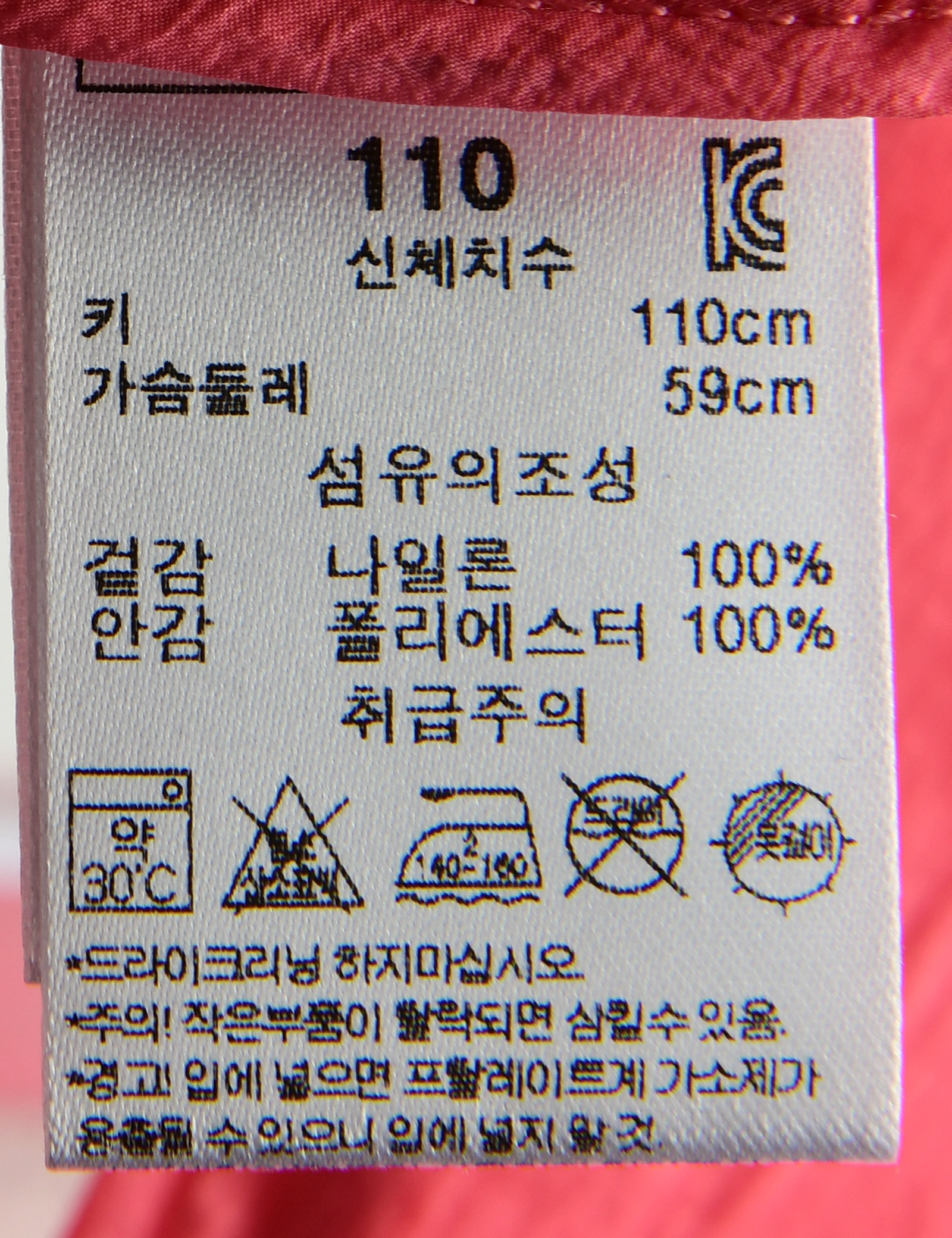 | 세탁방법 및 취급시 주의사항 | 본 세품은 손세탁 하십시오(케어라벨 참고) |