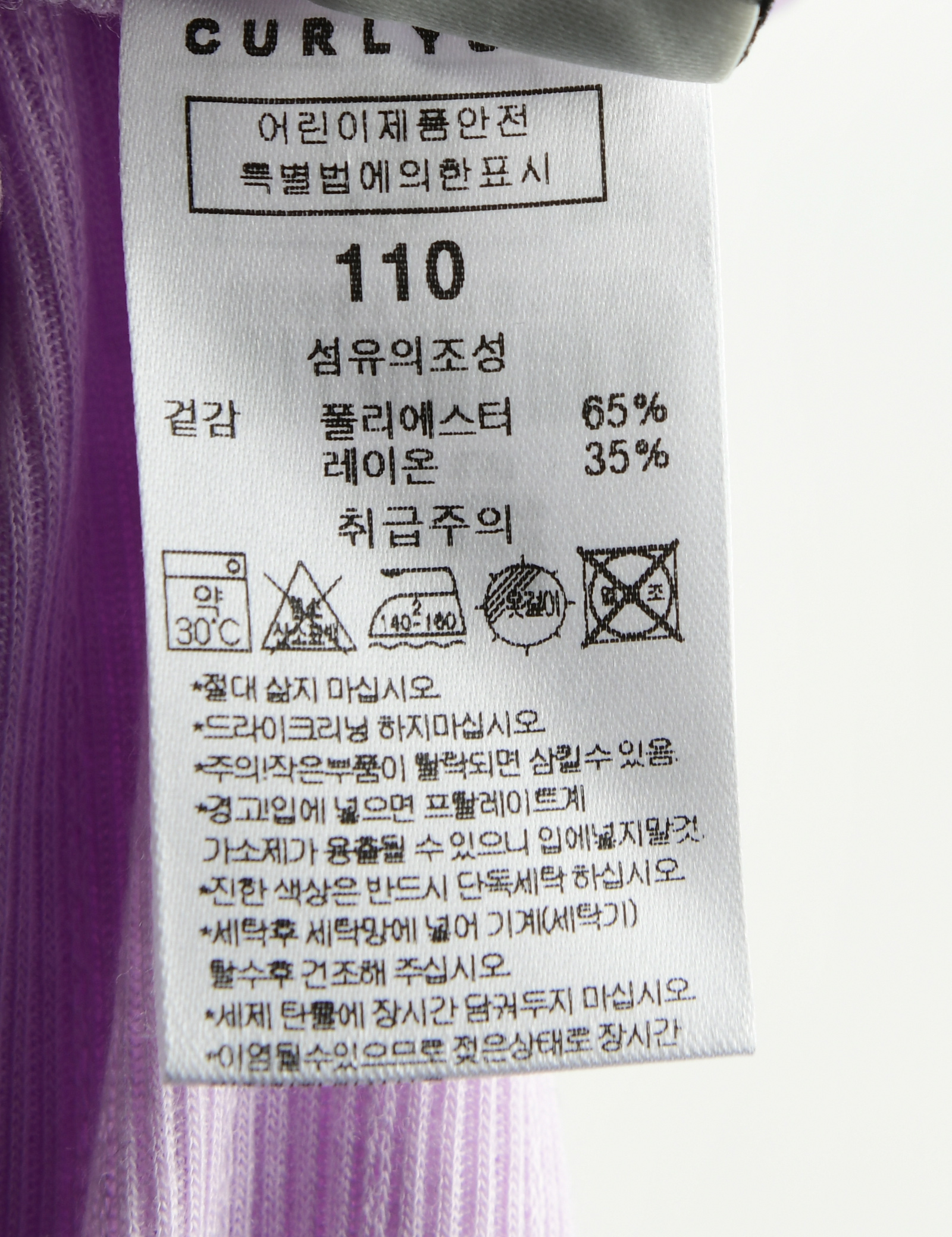 | 세탁방법 및 취급시 주의사항 | 본 세품은 손세탁 하십시오(케어라벨 참고) |