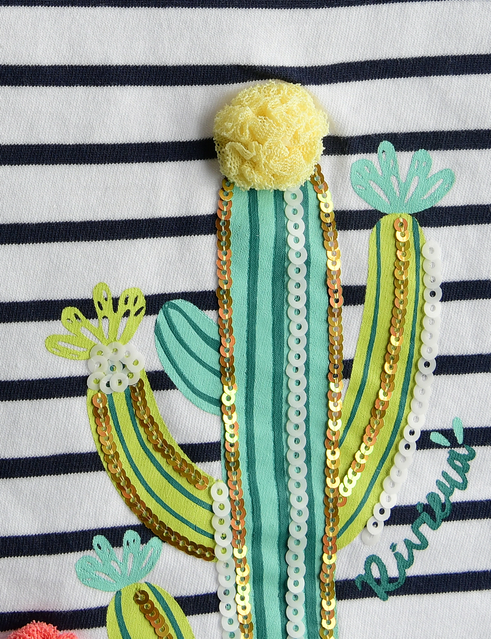 살짝 여유 있는 루즈핏의 티셔츠로 기본디자인이면서도 착장시 세련된 핏을 연출해 주는 아이템입니다.아트웍의 폼폼 장식에 귀여운 포인트를더했습니다.