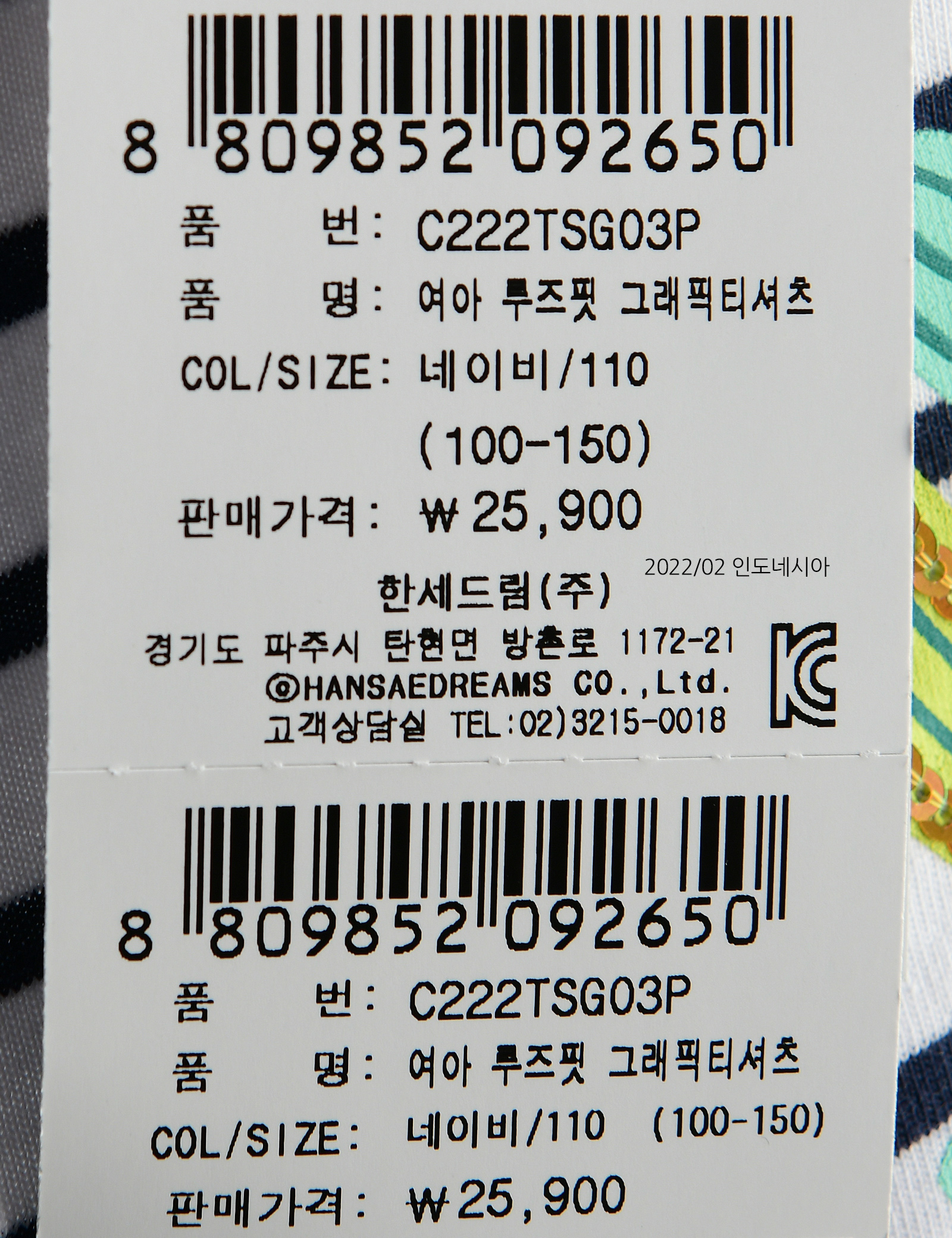 상품코드 C222TSG03P