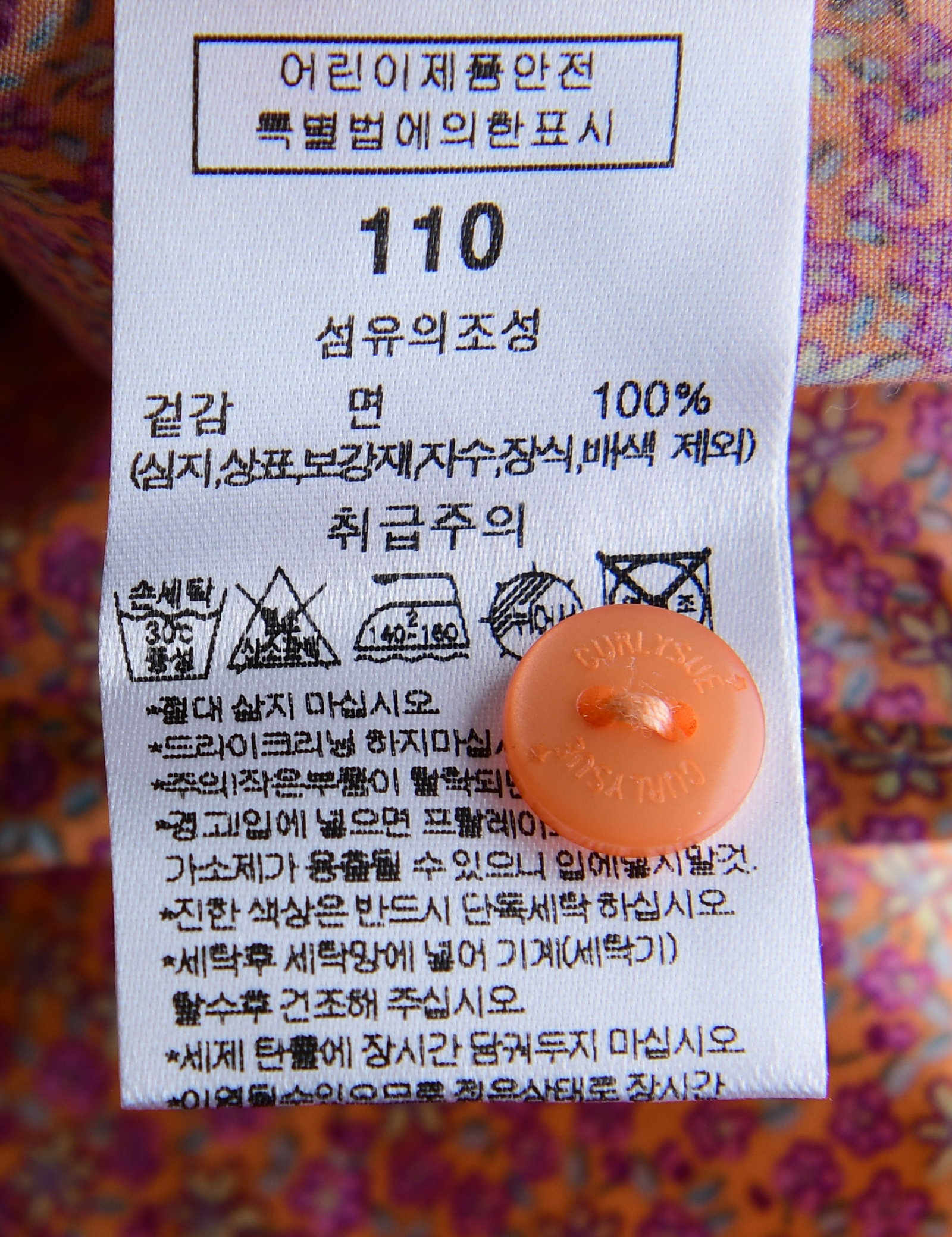 | 세탁방법 및 취급시 주의사항 | 본 세품은 손세탁 하십시오(케어라벨 참고) |