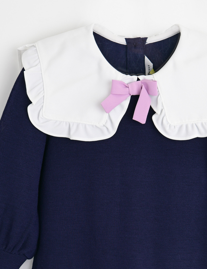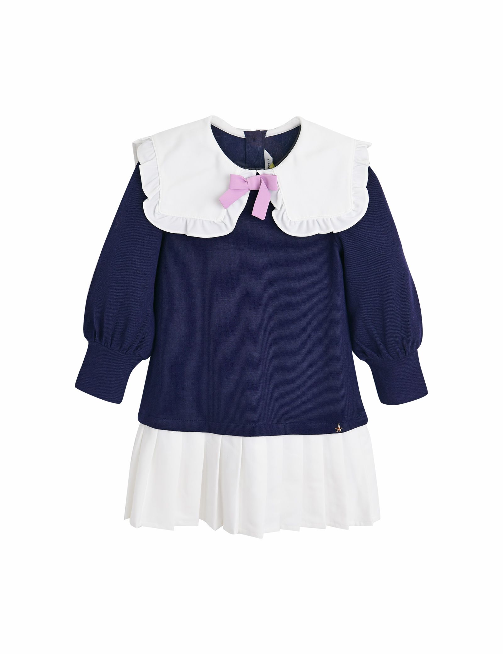 스퀘어 빅 카라에 배색 리본으로 디테일