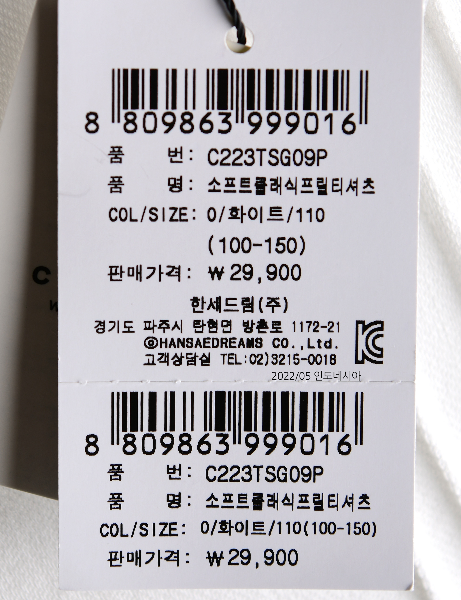 | 상품코드 | C223TSG09P |