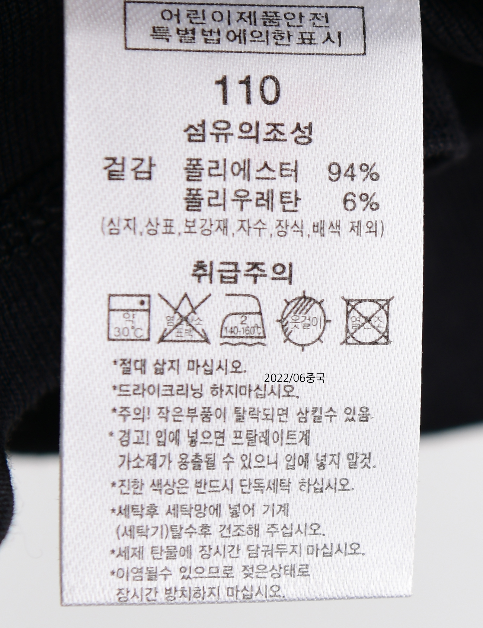 | 세탁방법 및 취급시 주의사항 | 본 세품은 손세탁 하십시오(케어라벨 참고) |