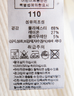 | 세탁방법 및 취급시 주의사항 | 본 세품은 손세탁 하십시오(케어라벨 참고) |