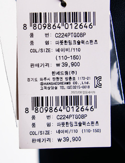 | 세탁방법 및 취급시 주의사항 | 본 세품은 손세탁 하십시오(케어라벨 참고) |