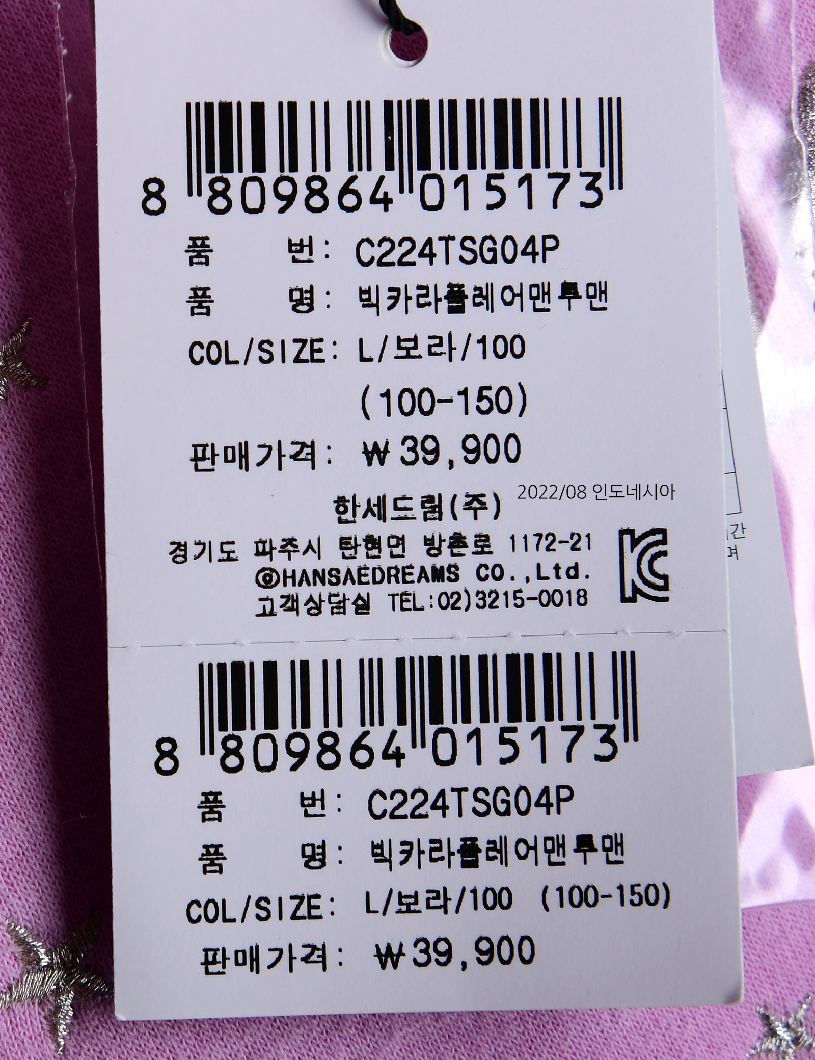 | 제조사 | 한세드림(주) |