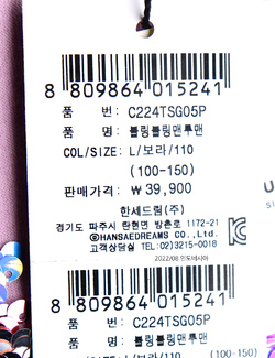 | 세탁방법 및 취급시 주의사항 | 본 세품은 손세탁 하십시오(케어라벨 참고) |