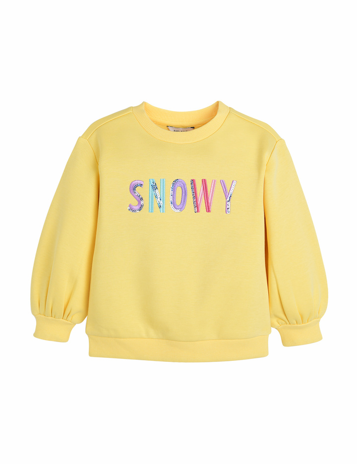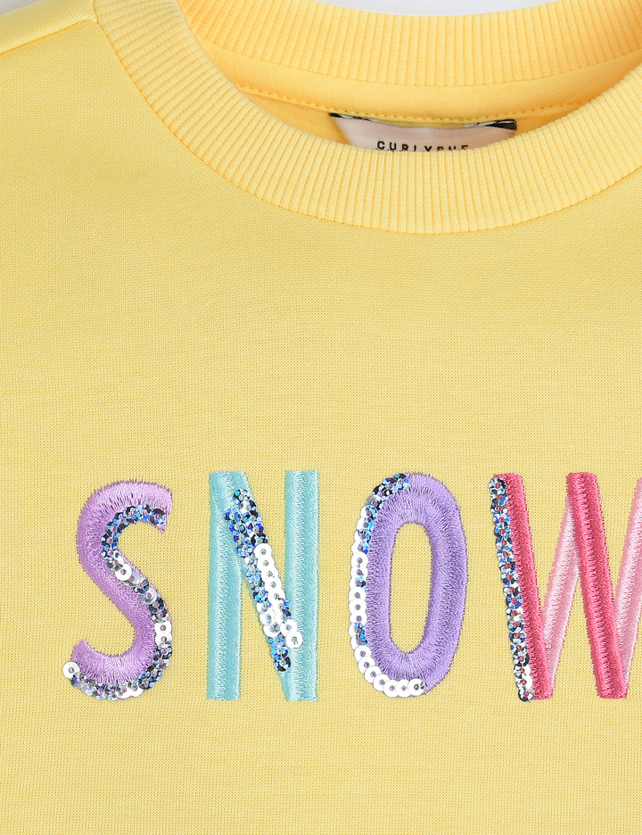 추운 겨울철 오색칼라자수+ 스팽클이 포인트로 들어간 산뜻하고 포근한 노란색 맨투맨 티셔츠입니다. 청바지와 가볍게 코디하기 좋은 맨투맨입니다.