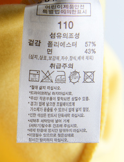 제품소재 (겉감)면43%,폴리에스터57%