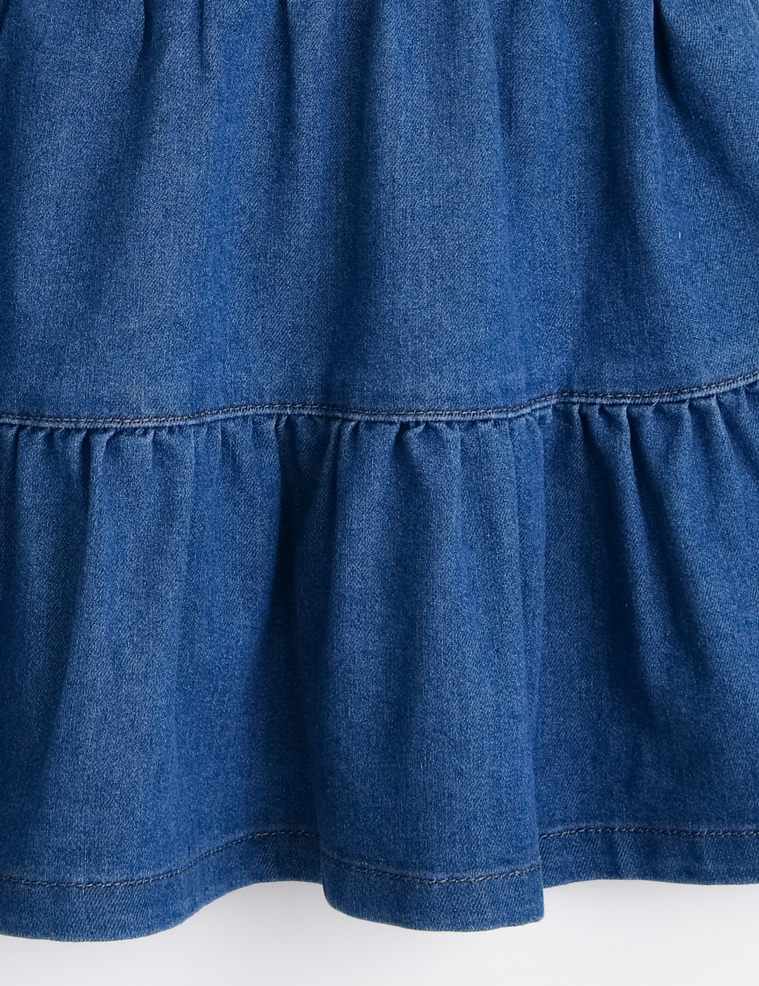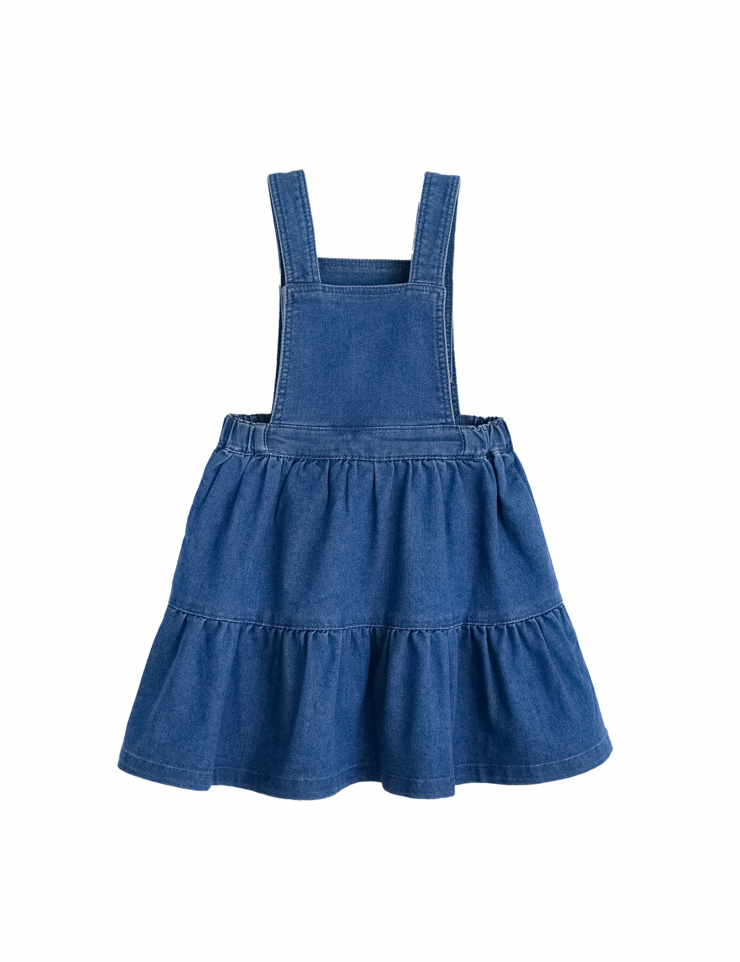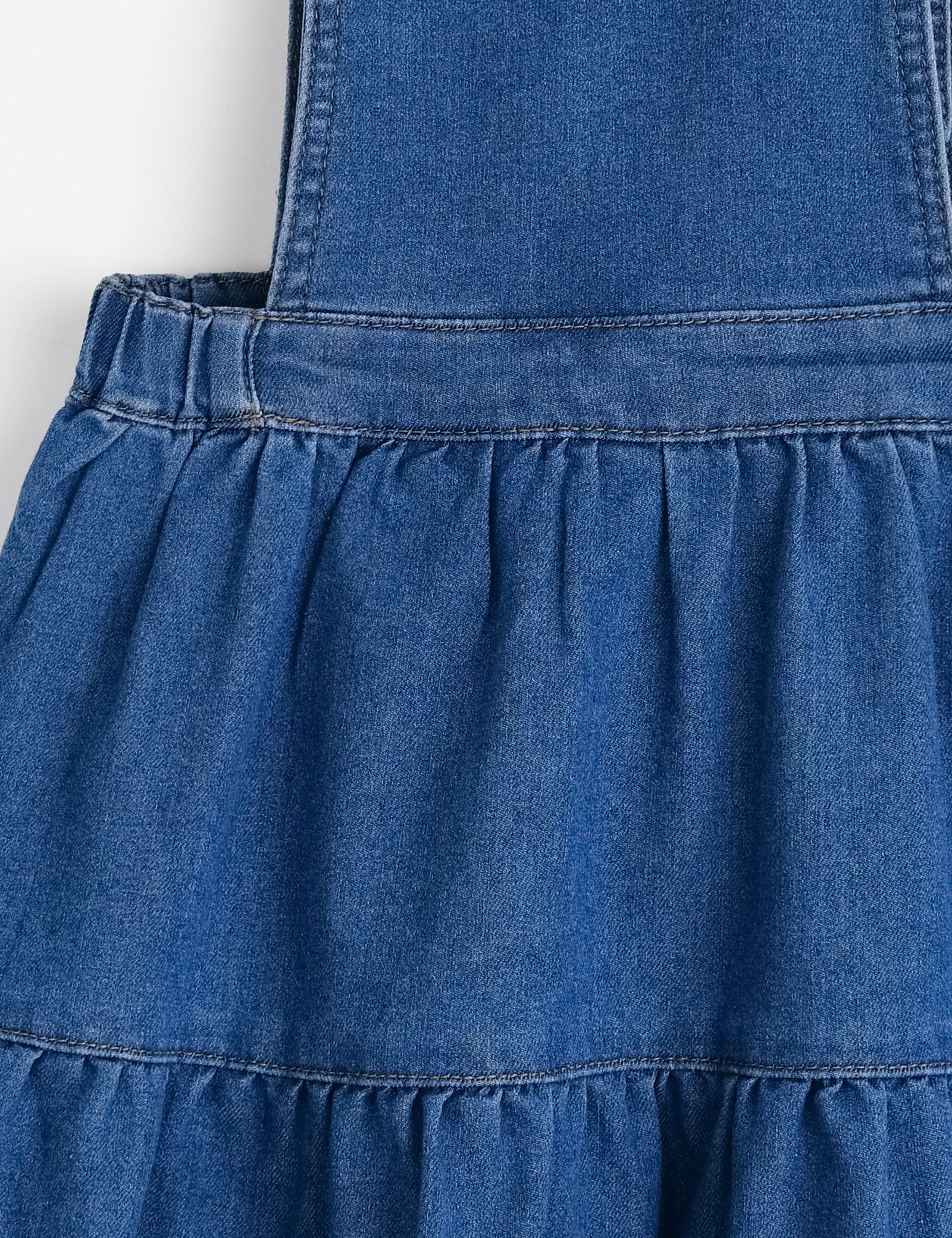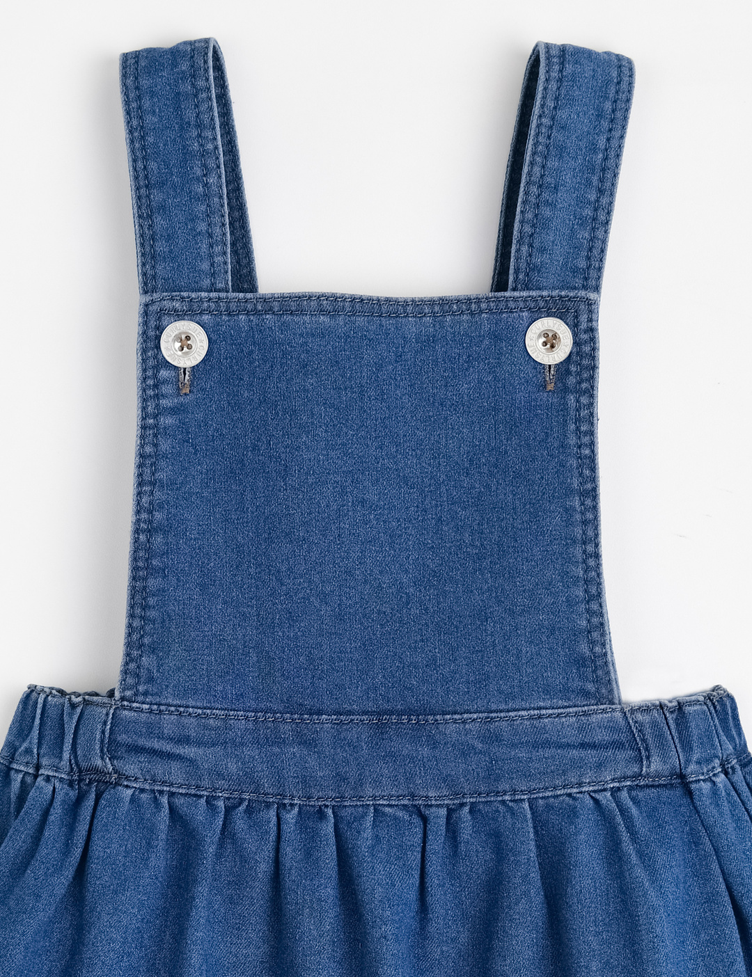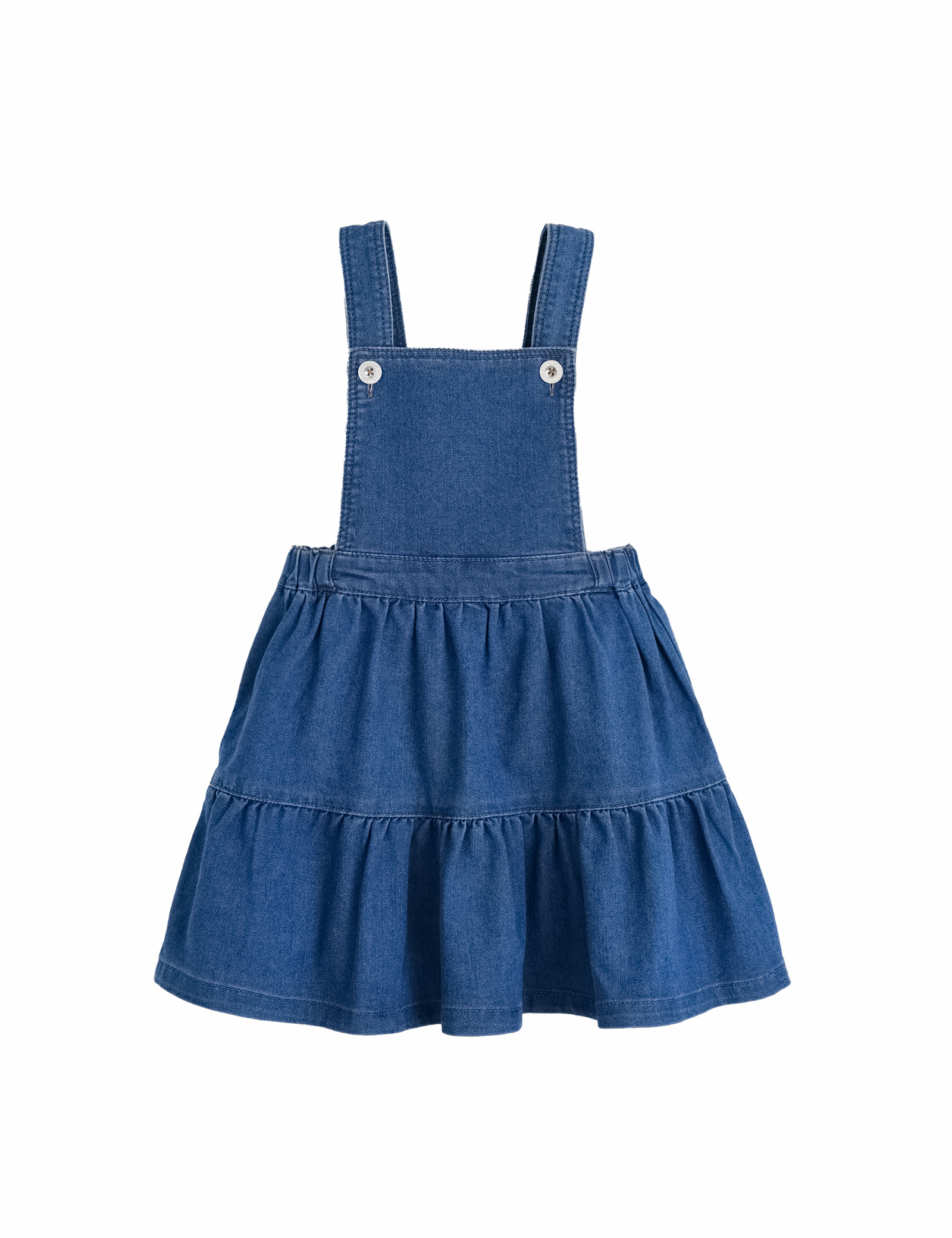 러블리한 캉캉 스타일의 데님 오버롤입니다. 카라 티블라우스뿐만 아니라 스트라이프 싱글티, 맨투맨과도 코디하고 용이한 아이템입니다. 또한 좌우 허리 부분에 밴드를 넣어 착용시 편안함을 더했습니다.