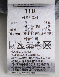 제품소재 (겉감)면95%,폴리우레탄5%(배색)나일론100%