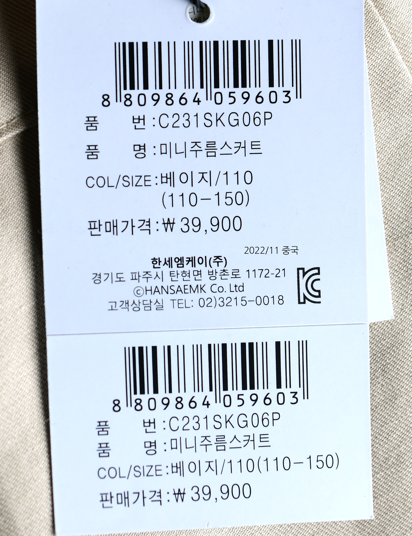 | 제조연월 | 202211 |