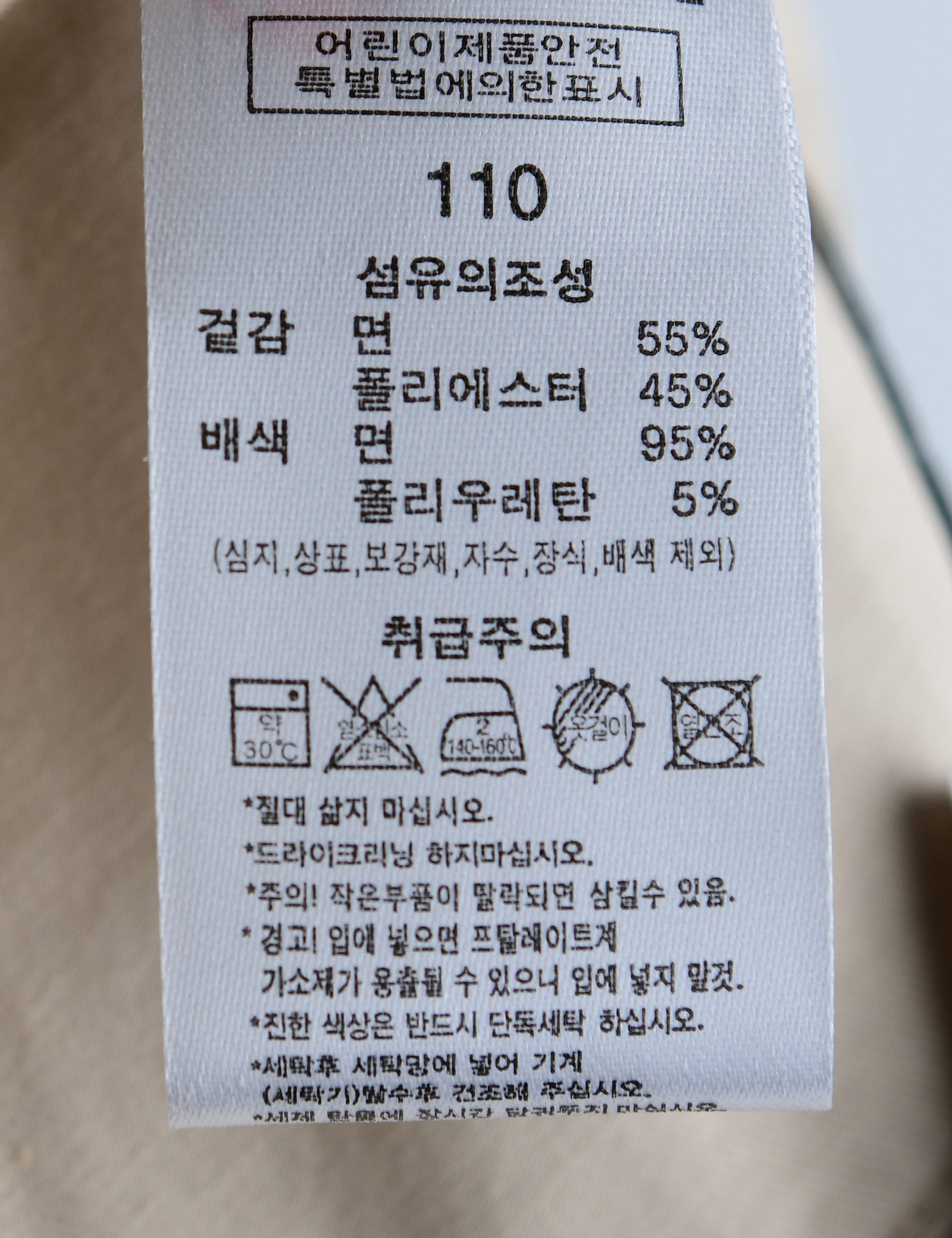 | 세탁방법 및 취급시 주의사항 | 본 세품은 손세탁 하십시오(케어라벨 참고) |