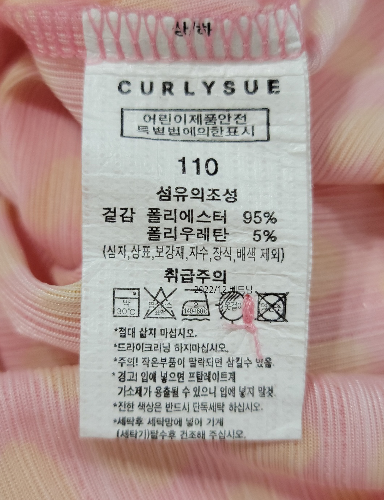 | 세탁방법 및 취급시 주의사항 | 본 세품은 손세탁 하십시오(케어라벨 참고) |