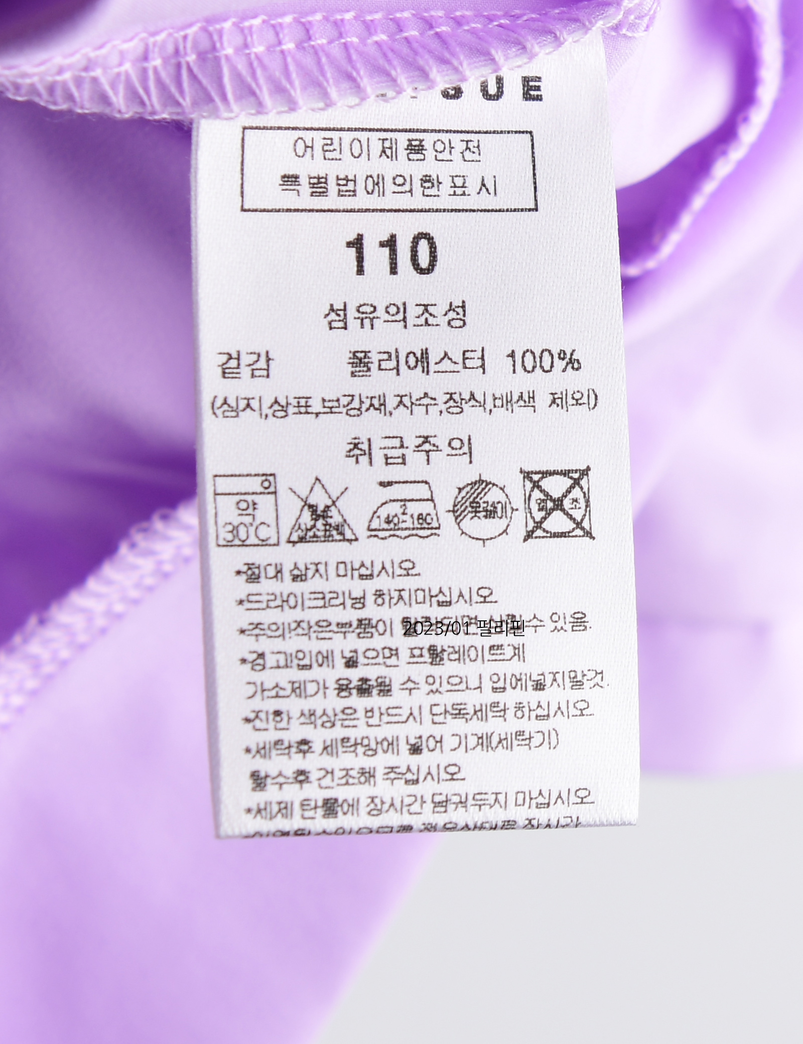 세탁방법 및 취급시 주의사항 본 세품은 손세탁 하십시오(케어라벨 참고)