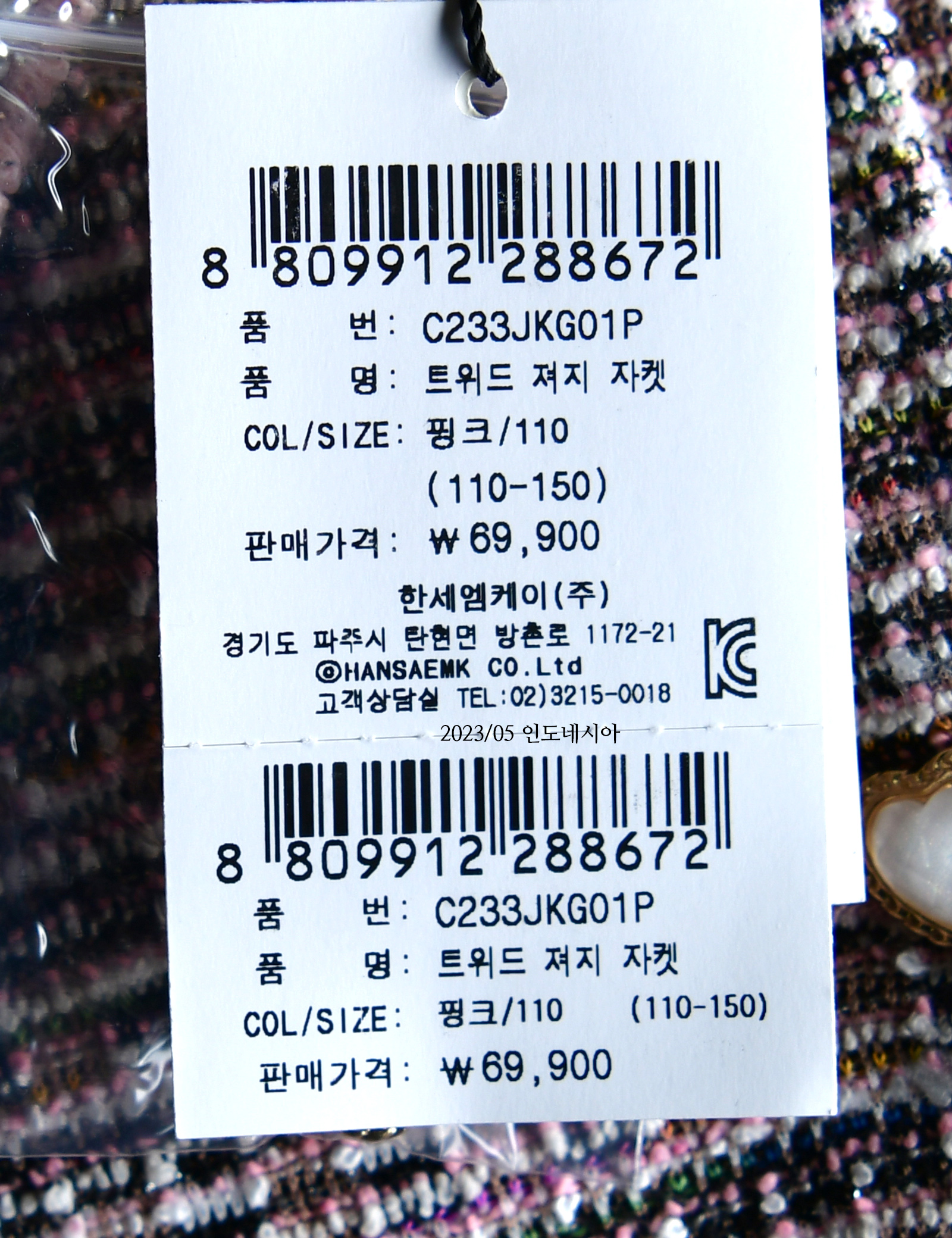 | 상품코드 | C233JKG01P |