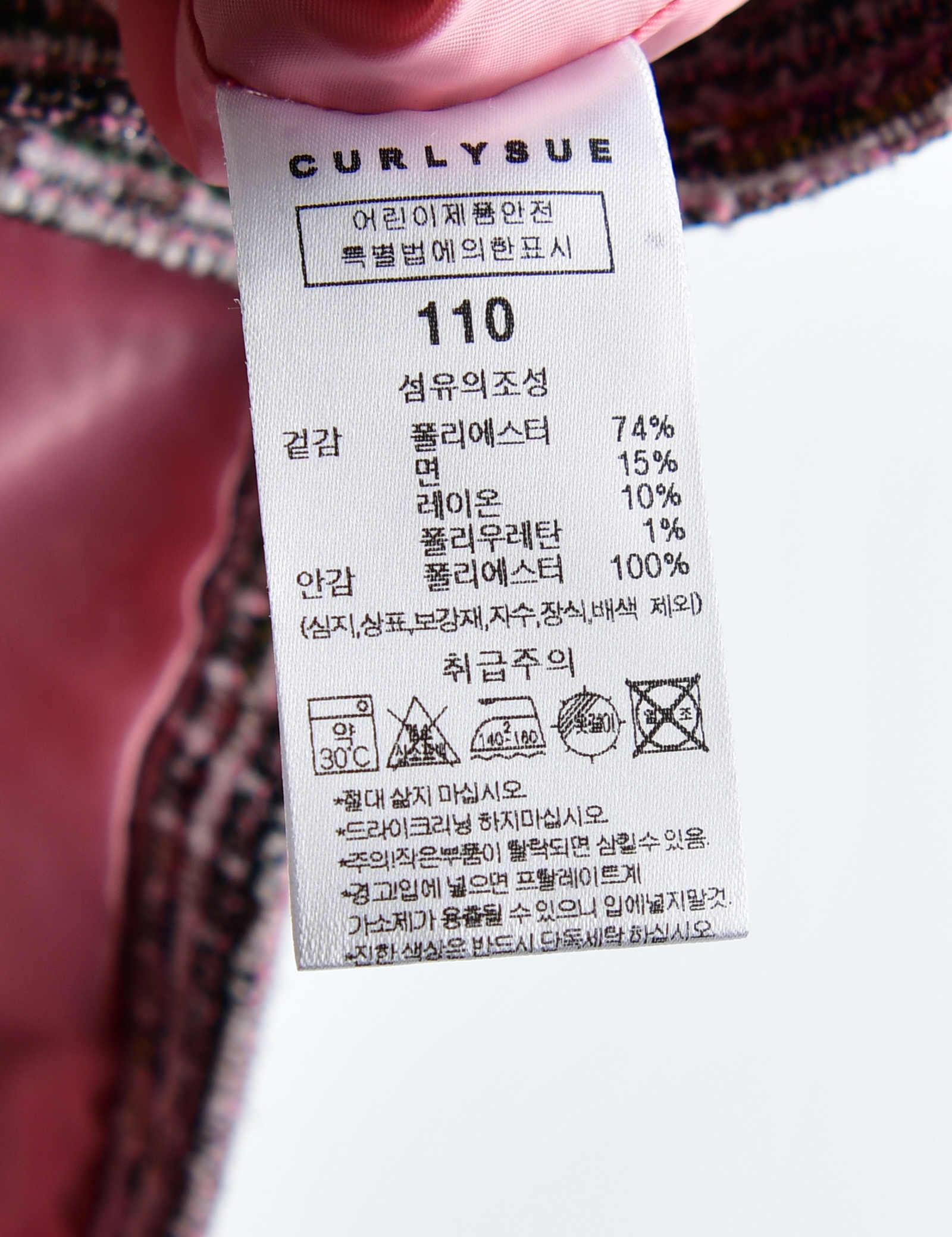 | 세탁방법 및 취급시 주의사항 | 본 세품은 손세탁 하십시오(케어라벨 참고) |
