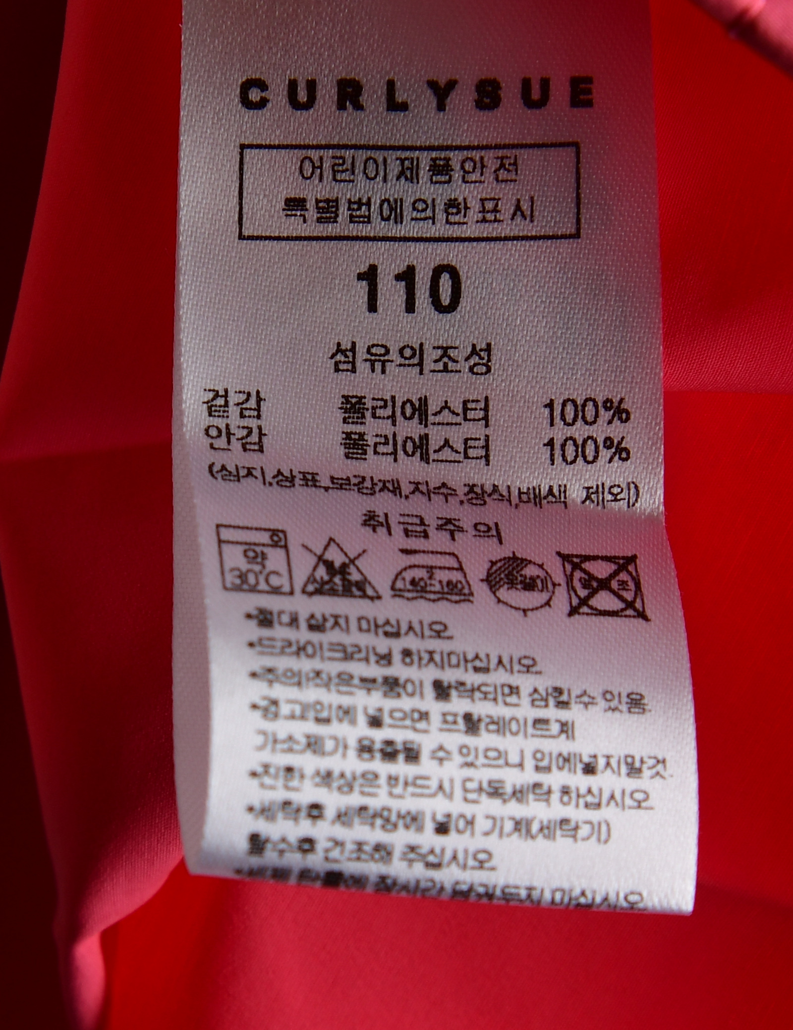 | 세탁방법 및 취급시 주의사항 | 본 세품은 손세탁 하십시오(케어라벨 참고) |