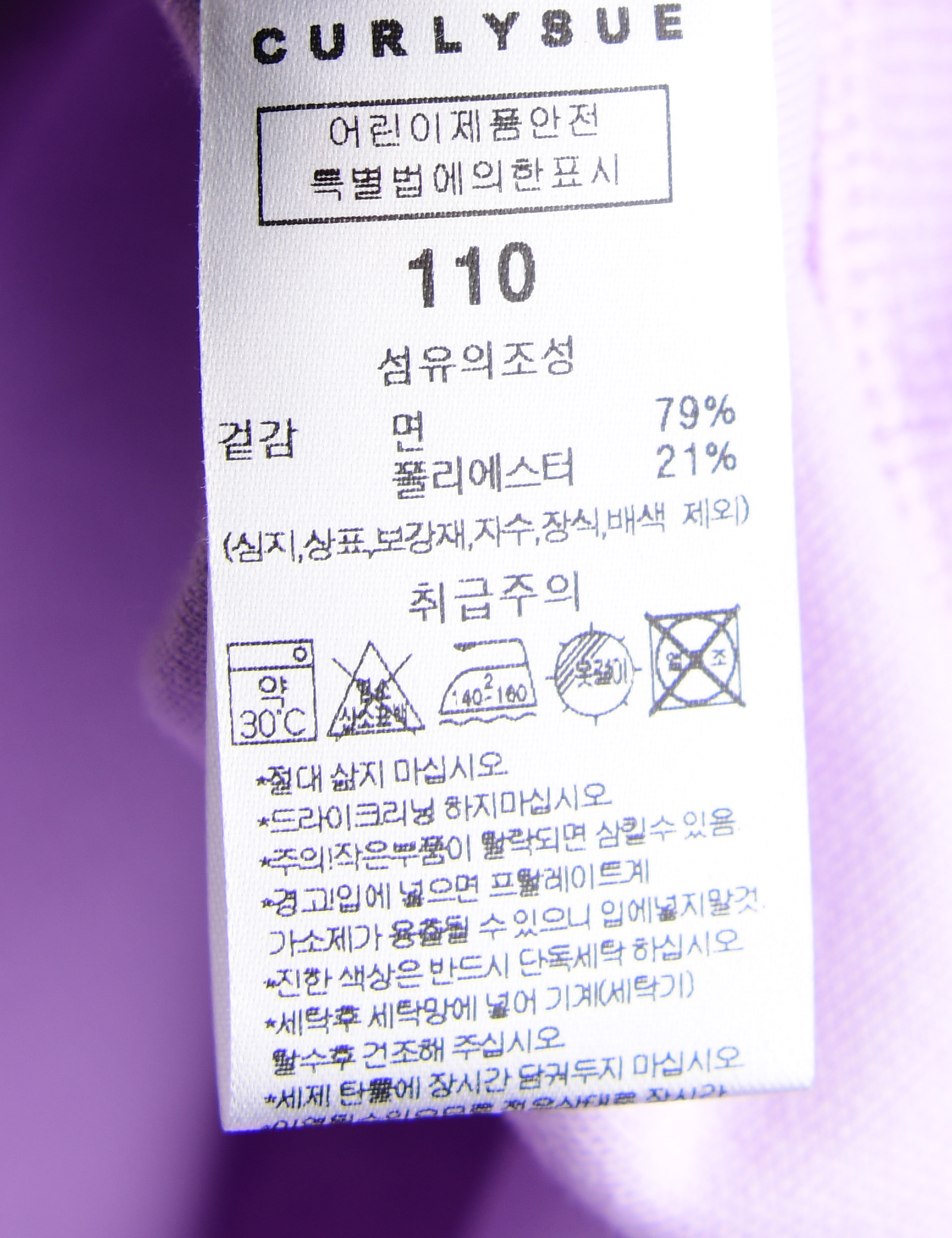 | 세탁방법 및 취급시 주의사항 | 본 세품은 손세탁 하십시오(케어라벨 참고) |