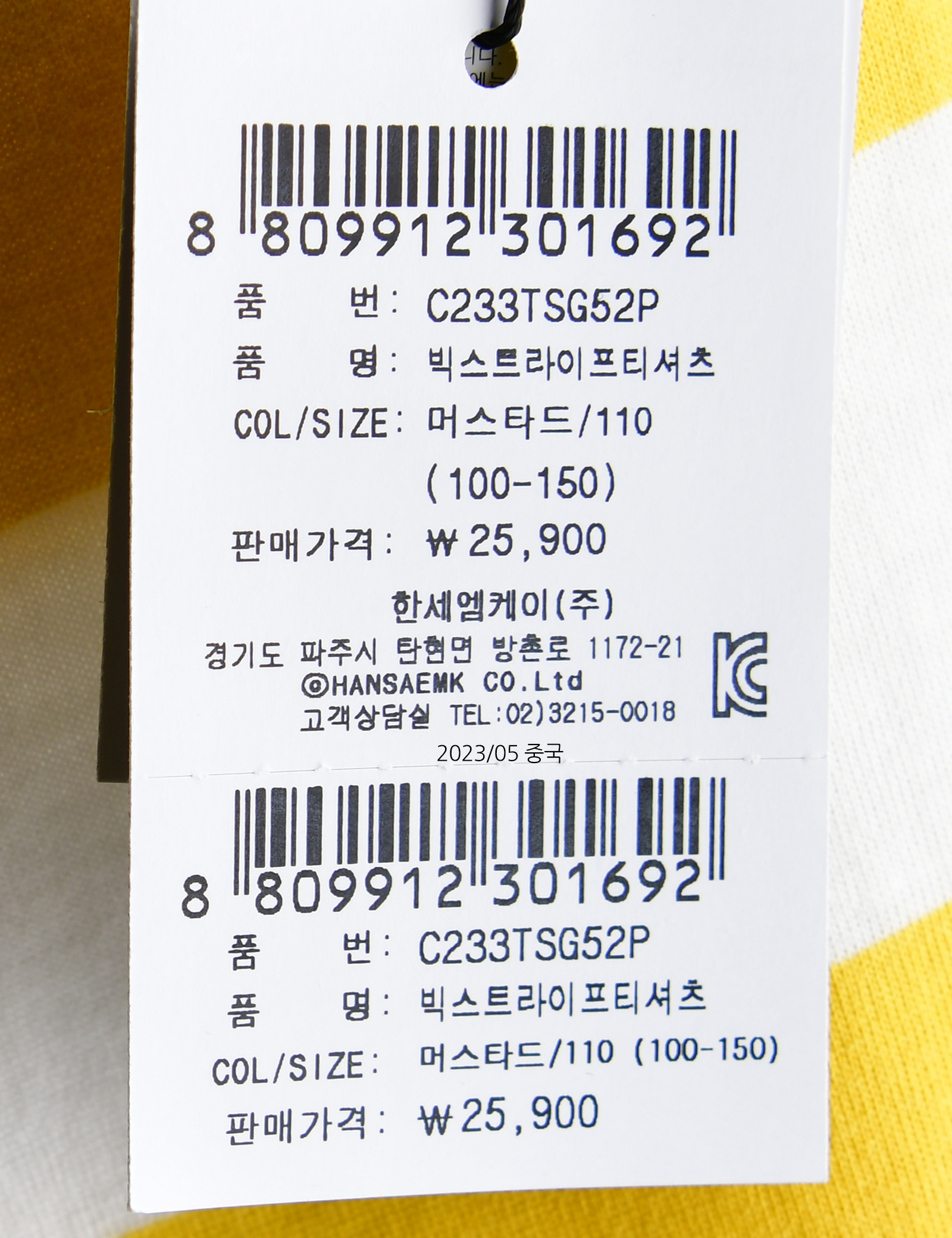 | 상품명 | [컬리수] 빅스트라이프티셔츠 |